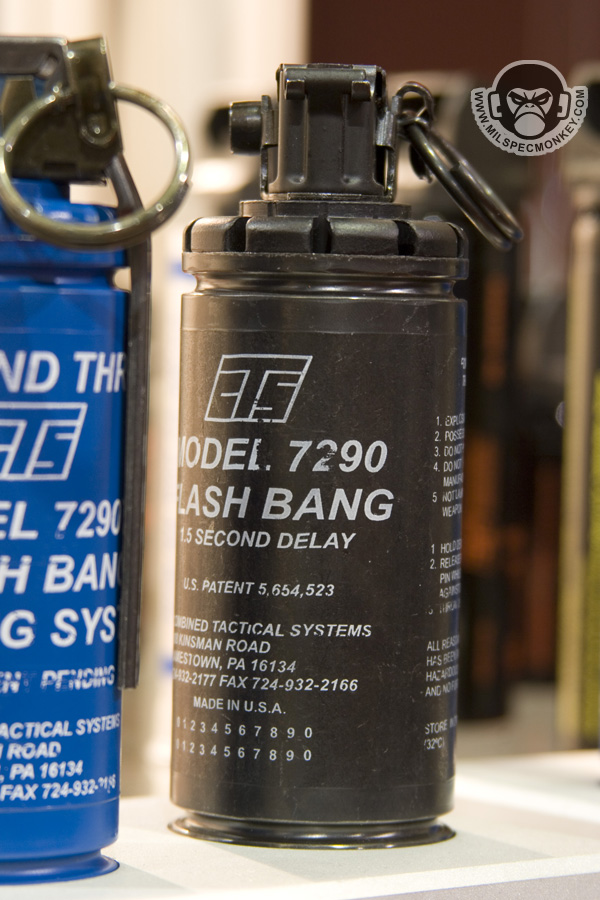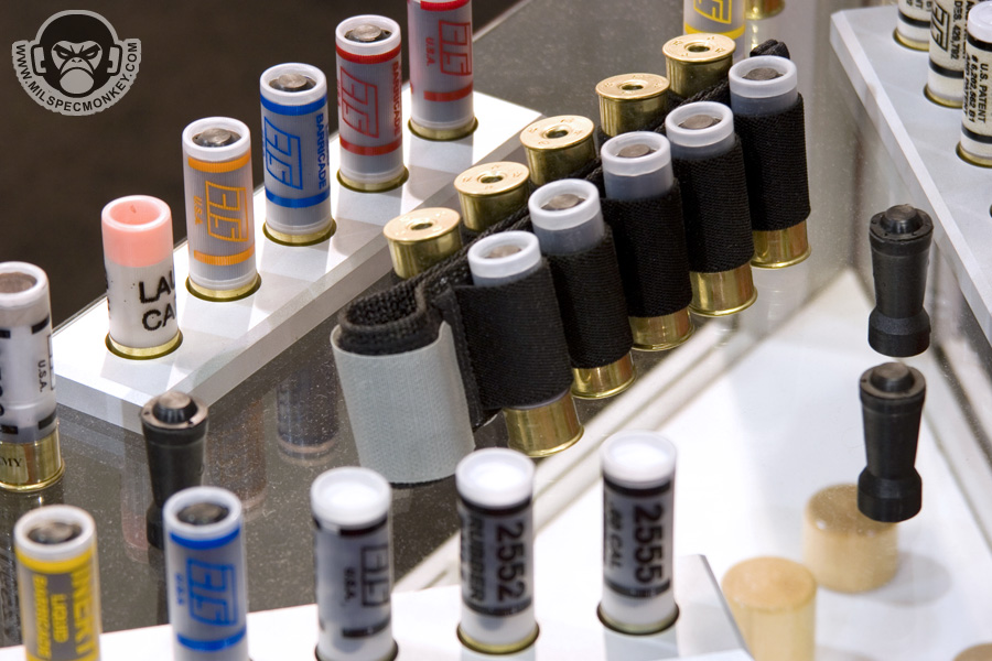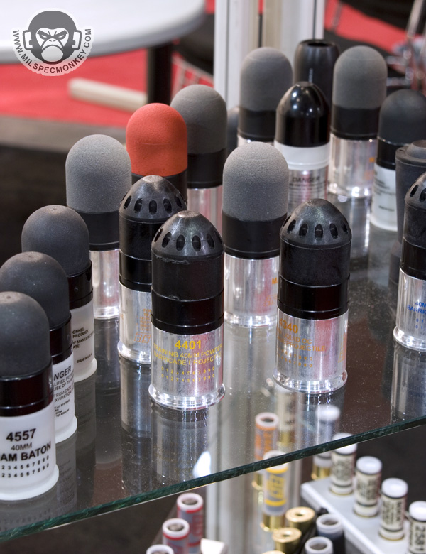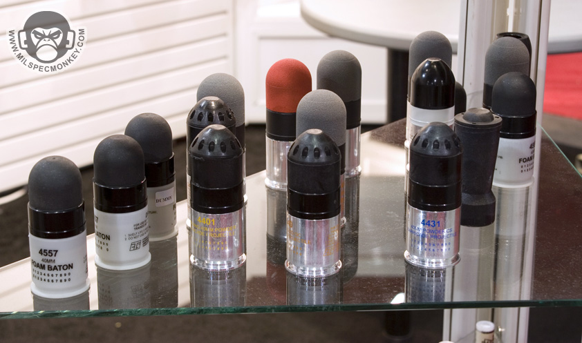 Gave these guys a media bugging right at the end of shotshow while they were packing up. I was foolish not to take pics of their 40mm launchers. As you can see they carry a vast range of less lethal products and their training counterparts. One thing I had not seen before was the mini-bang. They have the same qualities as a full flashbang, however smaller and 30% lighter. Fits in 40mm shell loops and some double mag pouches.