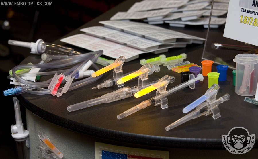 These guys graciously hooked me up with a letter so I could finally do some video at shot show. I spent DAYS calling people pre show and no one would write me a friggn' letter. Enough bitching, Embo-Optics brings some unique medical products for performing aid tasks when light discipline is critical. These are a little harder to explain in a short paragraph so please view the video demo: