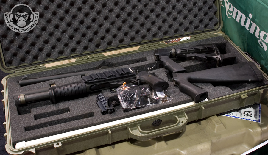 They had a tough looking set of their sniper rifles on display, but my favorite has to be the 870 MCS (Modular Combat Shotgun). The full kit allows one to go from classic stocked shotgun to shorty breaching weapon and then even to a M4 "master key". Stocks and barrels are able to be changed quickly and with no tools.