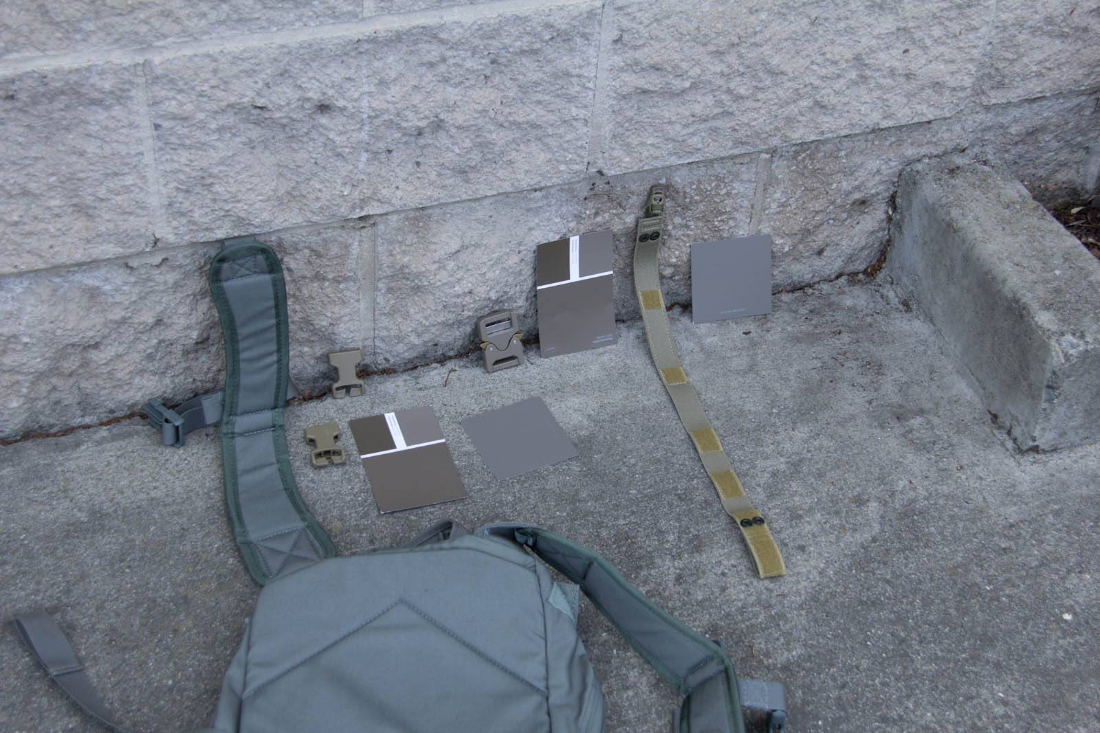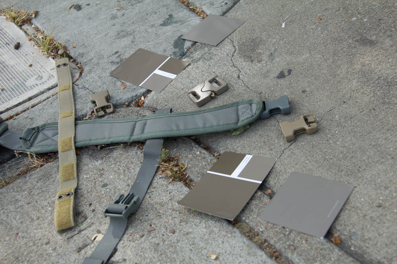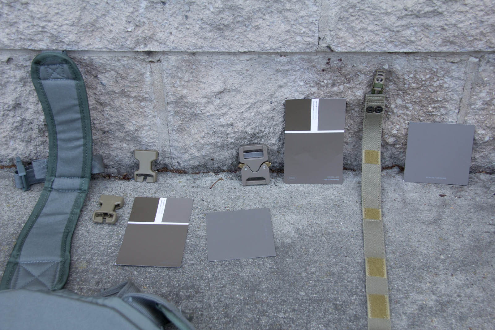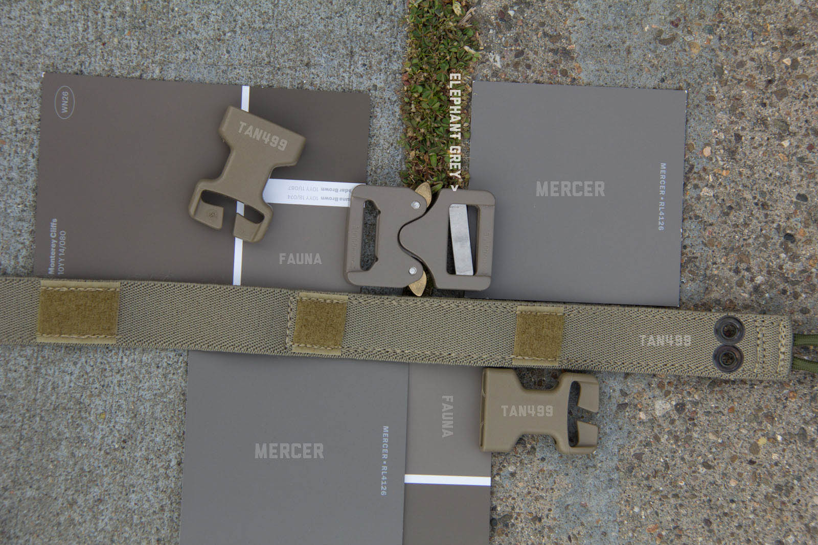 After several days of experimenting so far I think Elephant Grey/Fauna is doing the best job of finding a middle point, blending the best when next to varied/unmatched urban colors. This said, a possible down side is Elephant Grey/Fauna is not vastly different from Tan499 and when people look at it, most don't think grey. So to balance that out Mercer I think is next in line on being the right tone and not as warm so more folks will still perceive it as a grey. Supply chain wise it is good to know Tan499 is in the ballpark when a backup color is needed for a material. There are finer aspects to consider as well such as perhaps keeping Mercer gear clean for cool grey zones and then get them naturally dirty for blending in. That idea on the other hand probably wouldn't fly as well for LEOs with the whole public perception thing, so perhaps better to aim for the right color on clean gear.