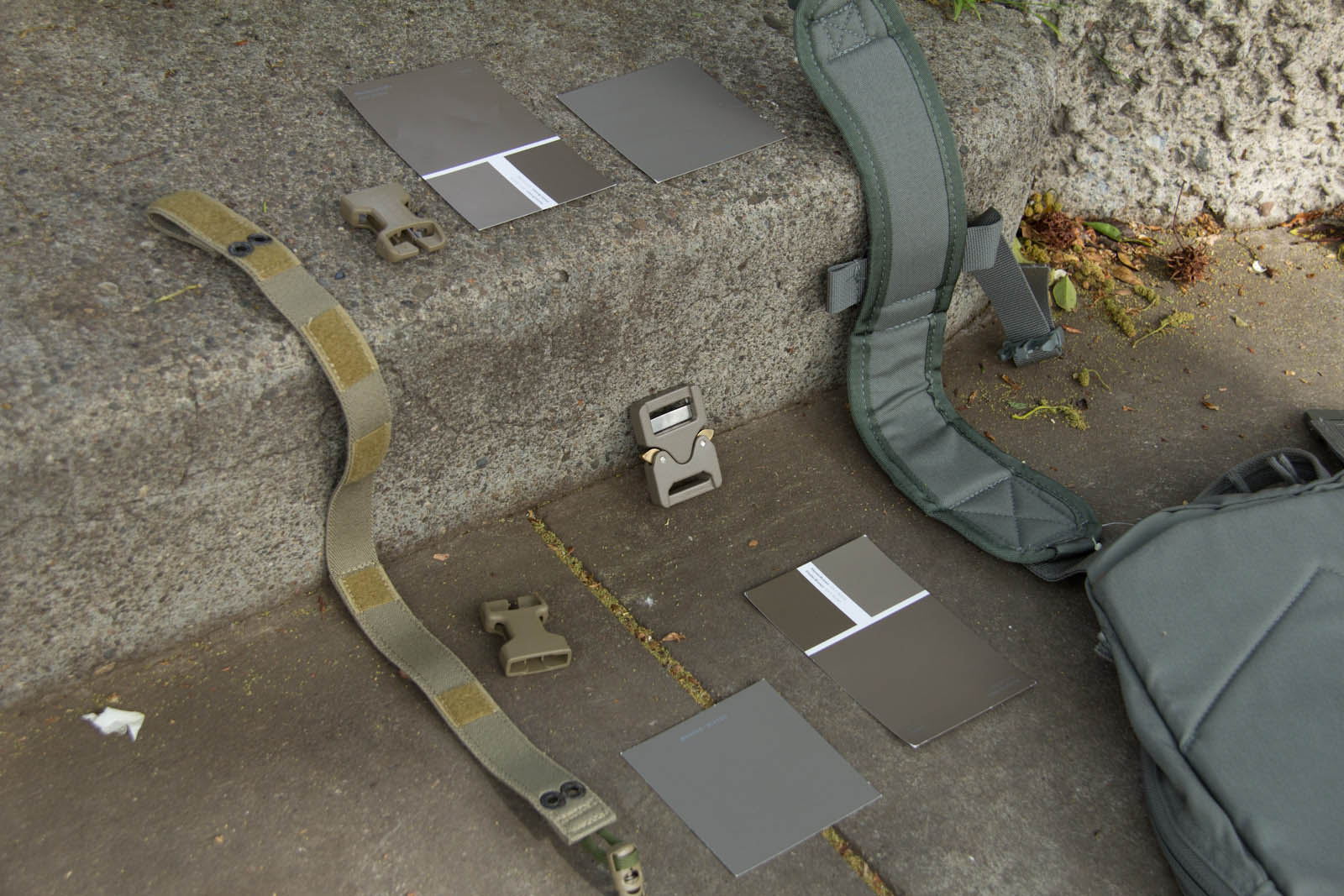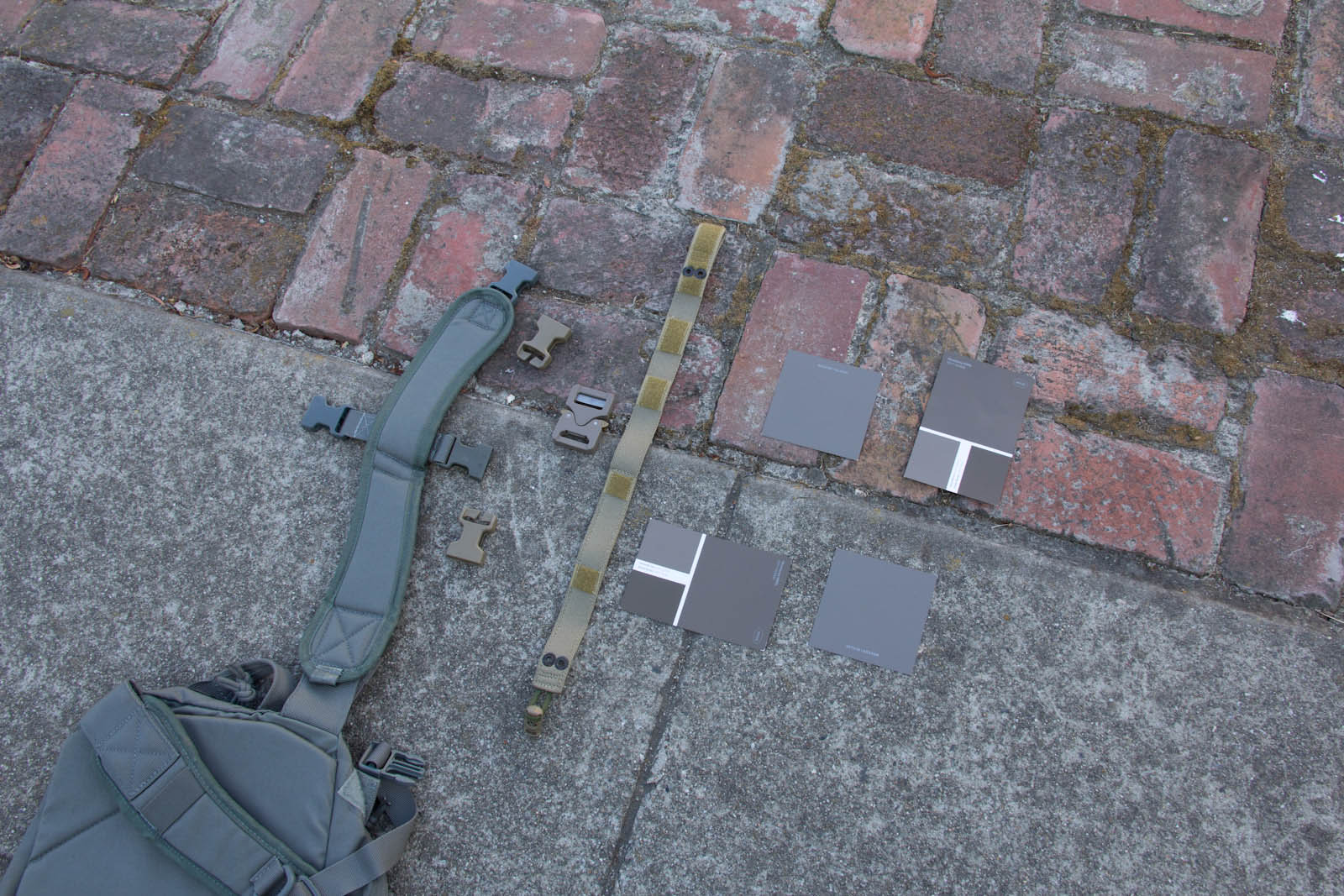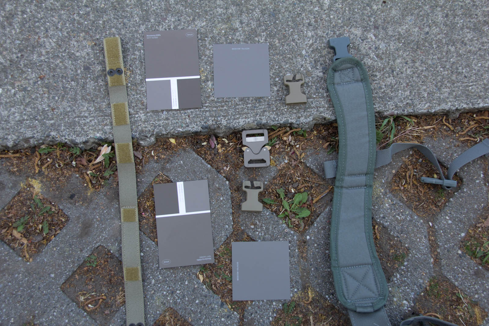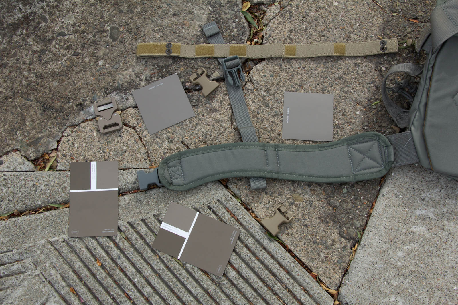 After several days of experimenting so far I think Elephant Grey/Fauna is doing the best job of finding a middle point, blending the best when next to varied/unmatched urban colors. This said, a possible down side is Elephant Grey/Fauna is not vastly different from Tan499 and when people look at it, most don't think grey. So to balance that out Mercer I think is next in line on being the right tone and not as warm so more folks will still perceive it as a grey. Supply chain wise it is good to know Tan499 is in the ballpark when a backup color is needed for a material. There are finer aspects to consider as well such as perhaps keeping Mercer gear clean for cool grey zones and then get them naturally dirty for blending in. That idea on the other hand probably wouldn't fly as well for LEOs with the whole public perception thing, so perhaps better to aim for the right color on clean gear.