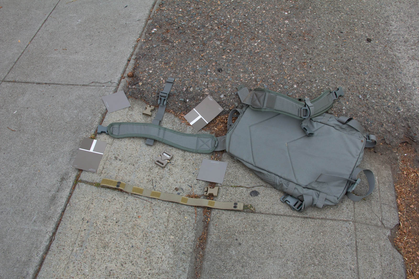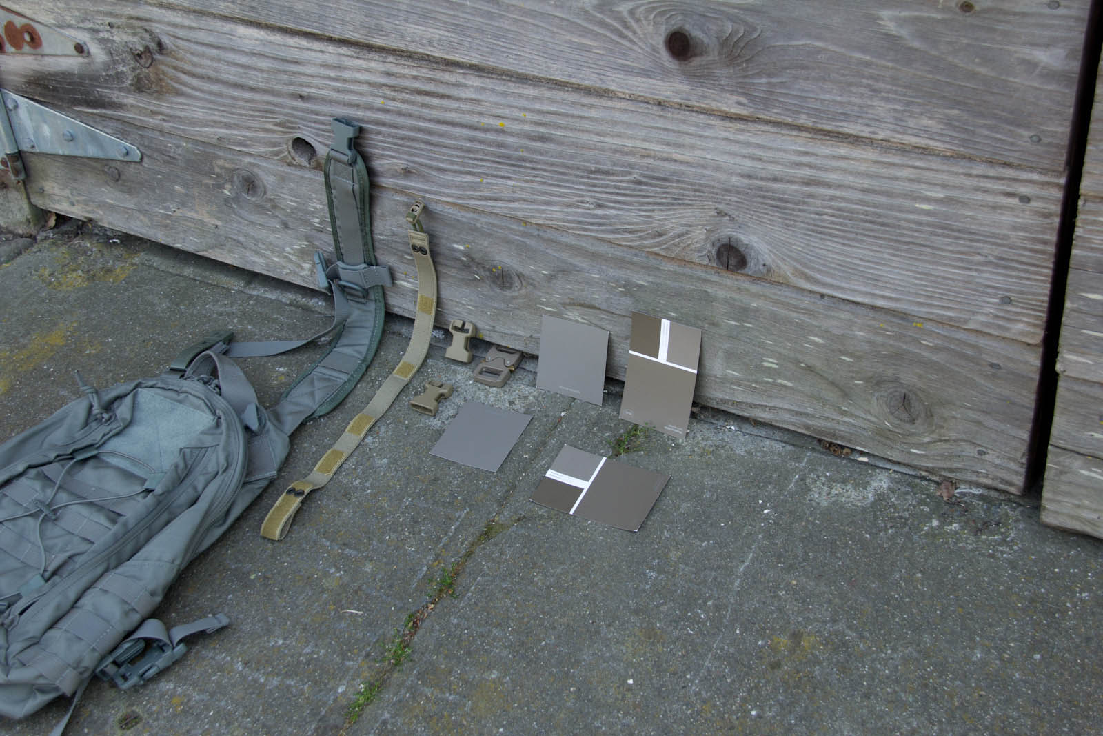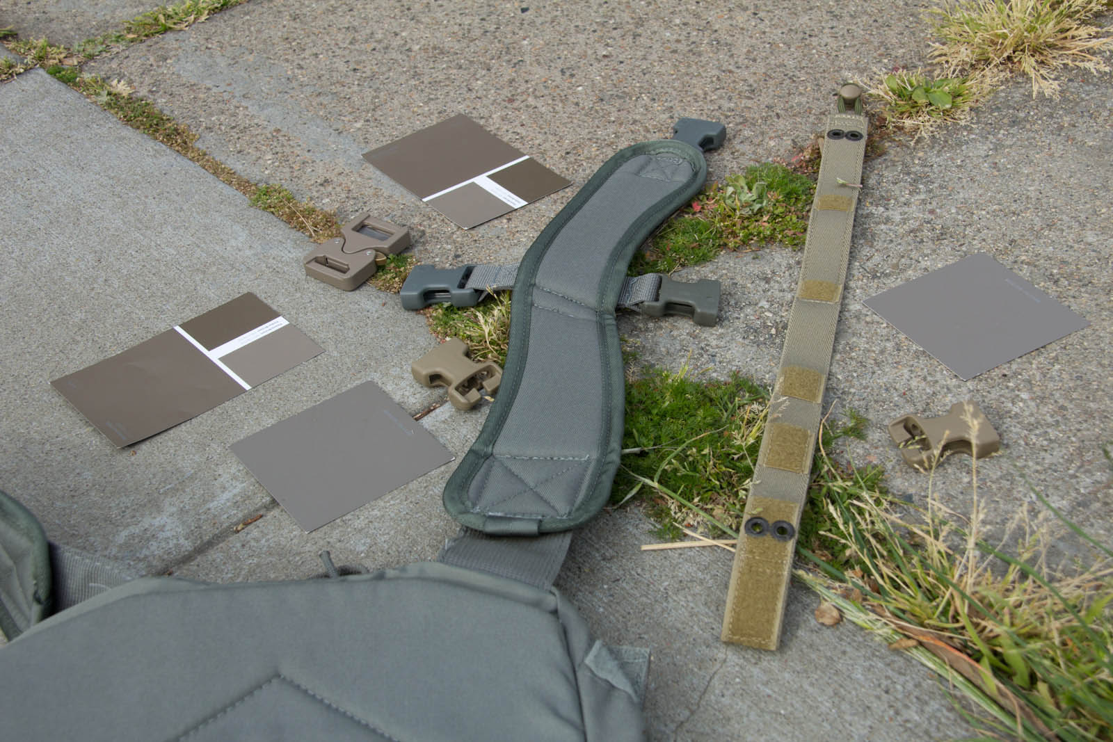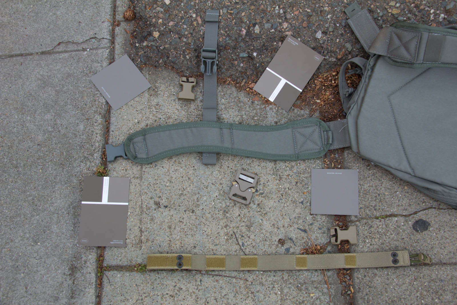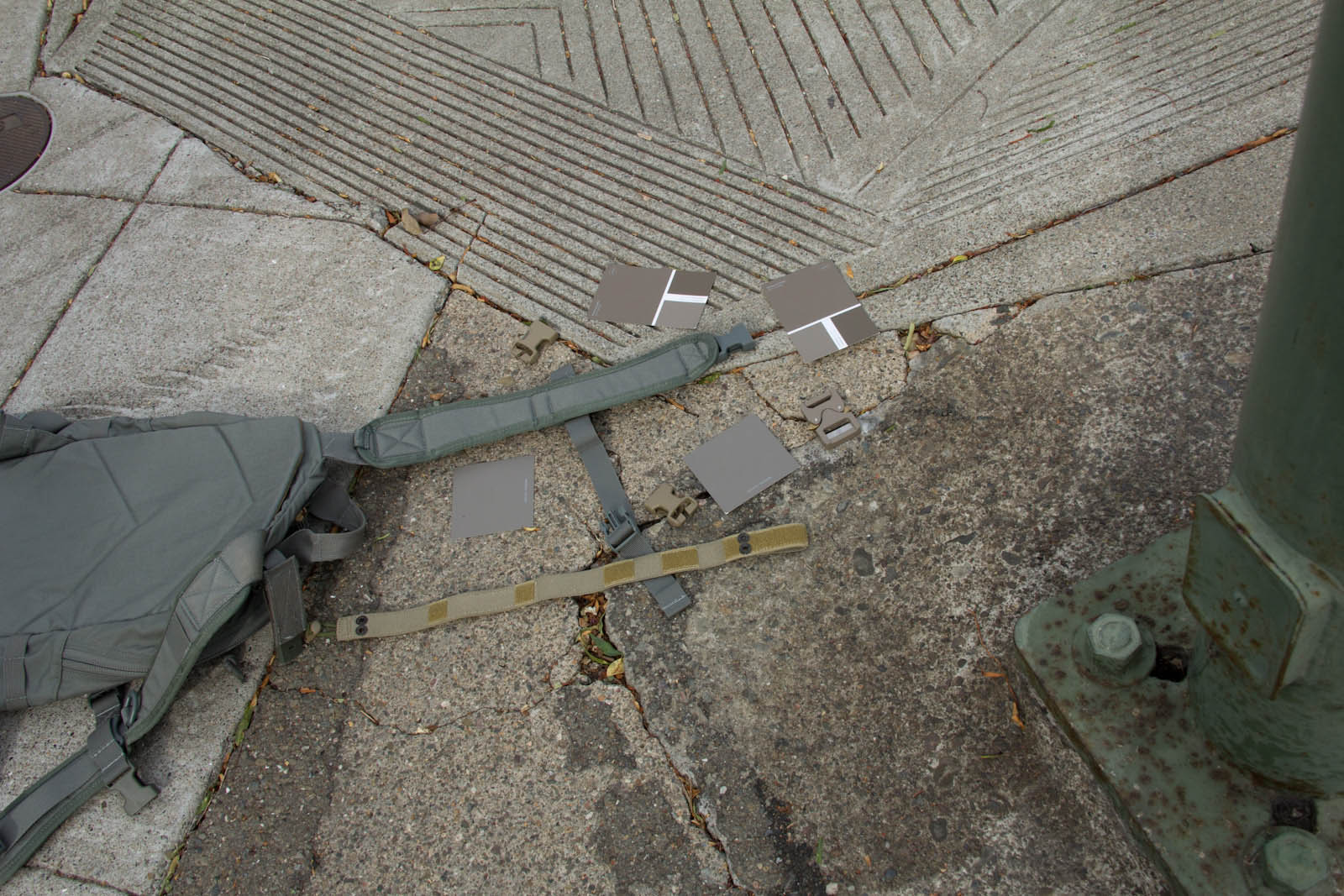 After several days of experimenting so far I think Elephant Grey/Fauna is doing the best job of finding a middle point, blending the best when next to varied/unmatched urban colors. This said, a possible down side is Elephant Grey/Fauna is not vastly different from Tan499 and when people look at it, most don't think grey. So to balance that out Mercer I think is next in line on being the right tone and not as warm so more folks will still perceive it as a grey. Supply chain wise it is good to know Tan499 is in the ballpark when a backup color is needed for a material. There are finer aspects to consider as well such as perhaps keeping Mercer gear clean for cool grey zones and then get them naturally dirty for blending in. That idea on the other hand probably wouldn't fly as well for LEOs with the whole public perception thing, so perhaps better to aim for the right color on clean gear.
