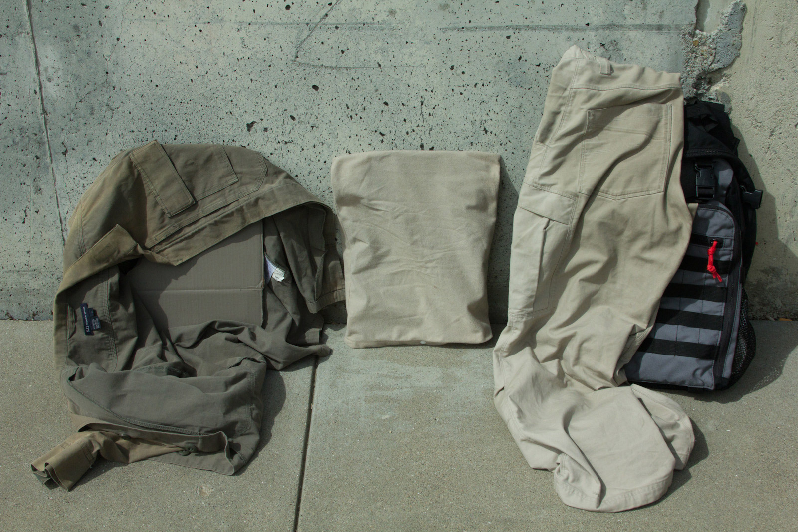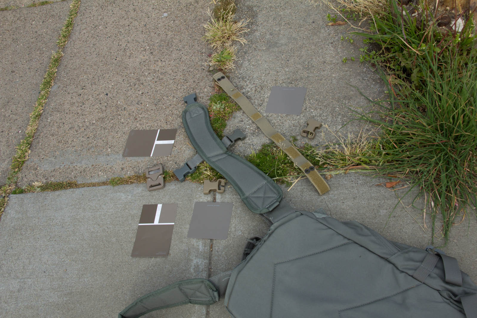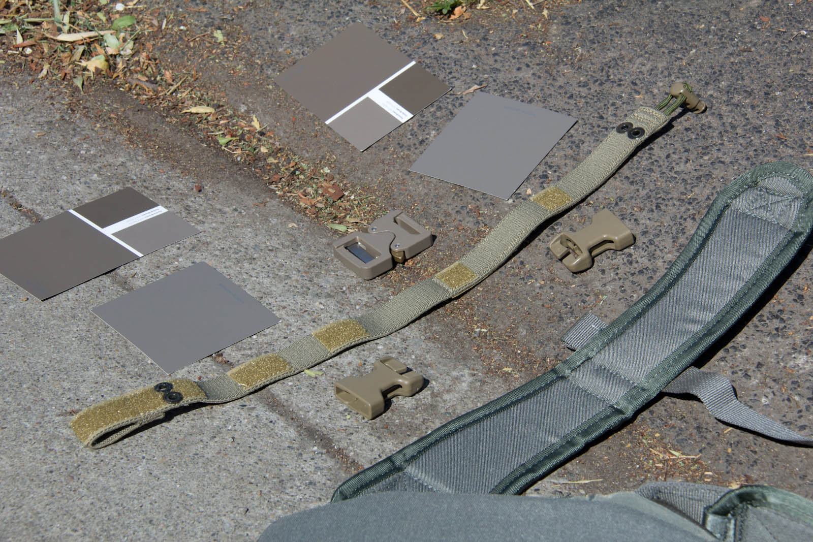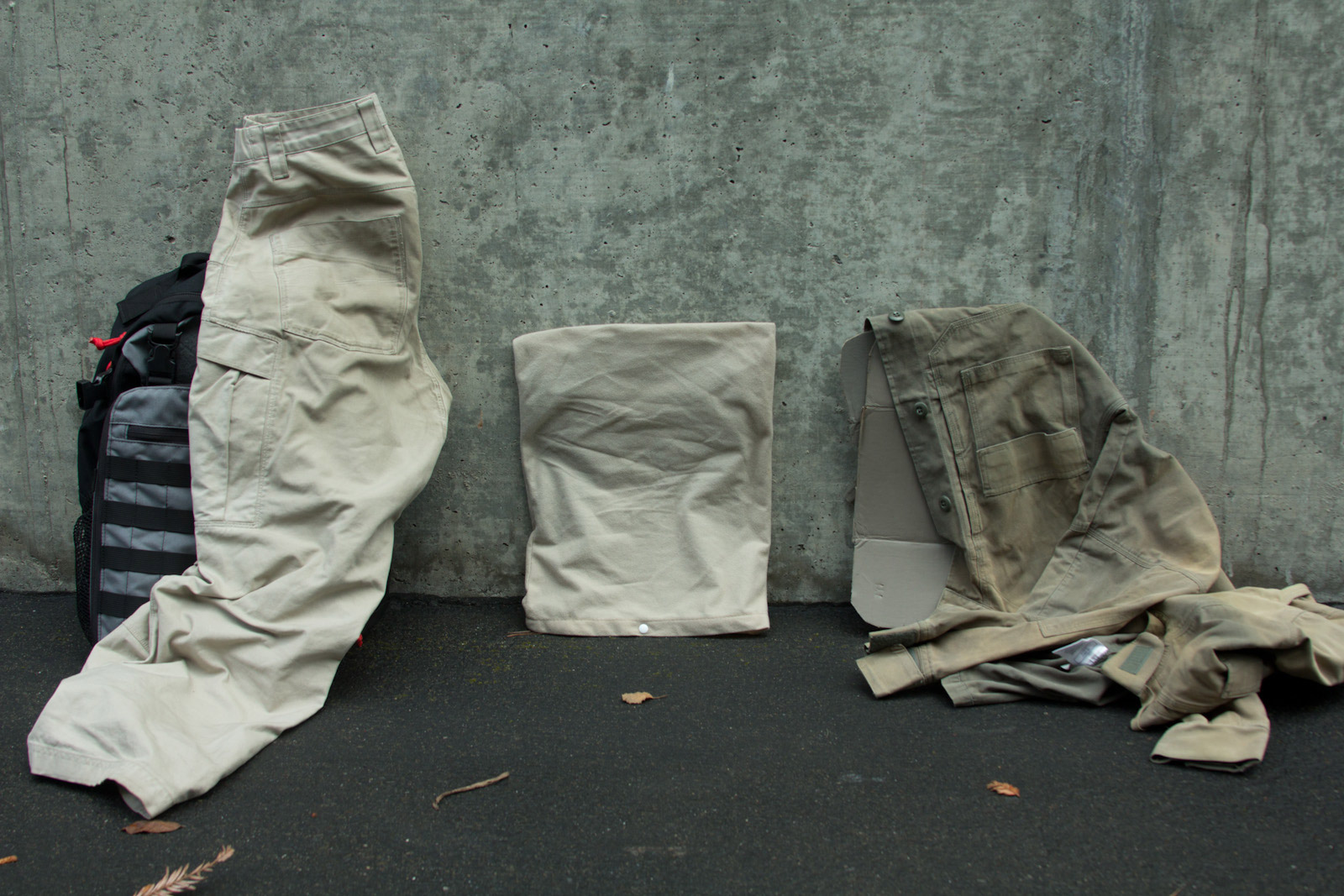 After several days of experimenting so far I think Elephant Grey/Fauna is doing the best job of finding a middle point, blending the best when next to varied/unmatched urban colors. This said, a possible down side is Elephant Grey/Fauna is not vastly different from Tan499 and when people look at it, most don't think grey. So to balance that out Mercer I think is next in line on being the right tone and not as warm so more folks will still perceive it as a grey. Supply chain wise it is good to know Tan499 is in the ballpark when a backup color is needed for a material. There are finer aspects to consider as well such as perhaps keeping Mercer gear clean for cool grey zones and then get them naturally dirty for blending in. That idea on the other hand probably wouldn't fly as well for LEOs with the whole public perception thing, so perhaps better to aim for the right color on clean gear.