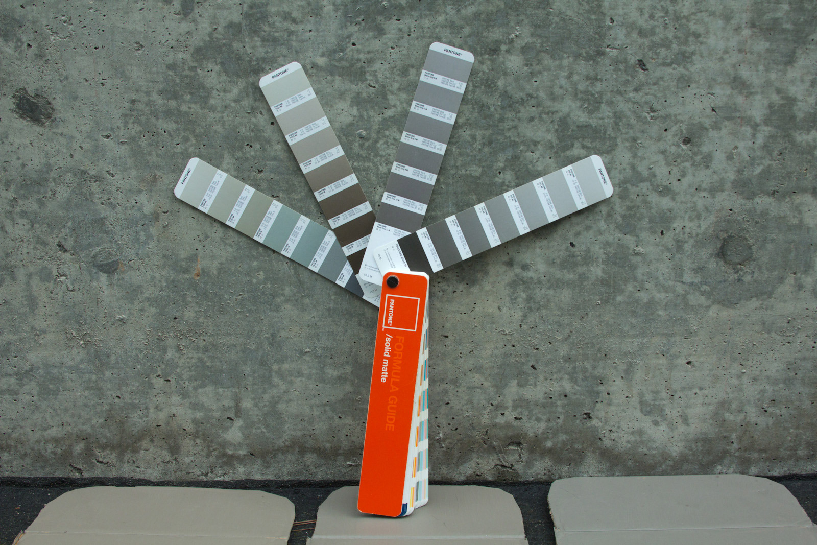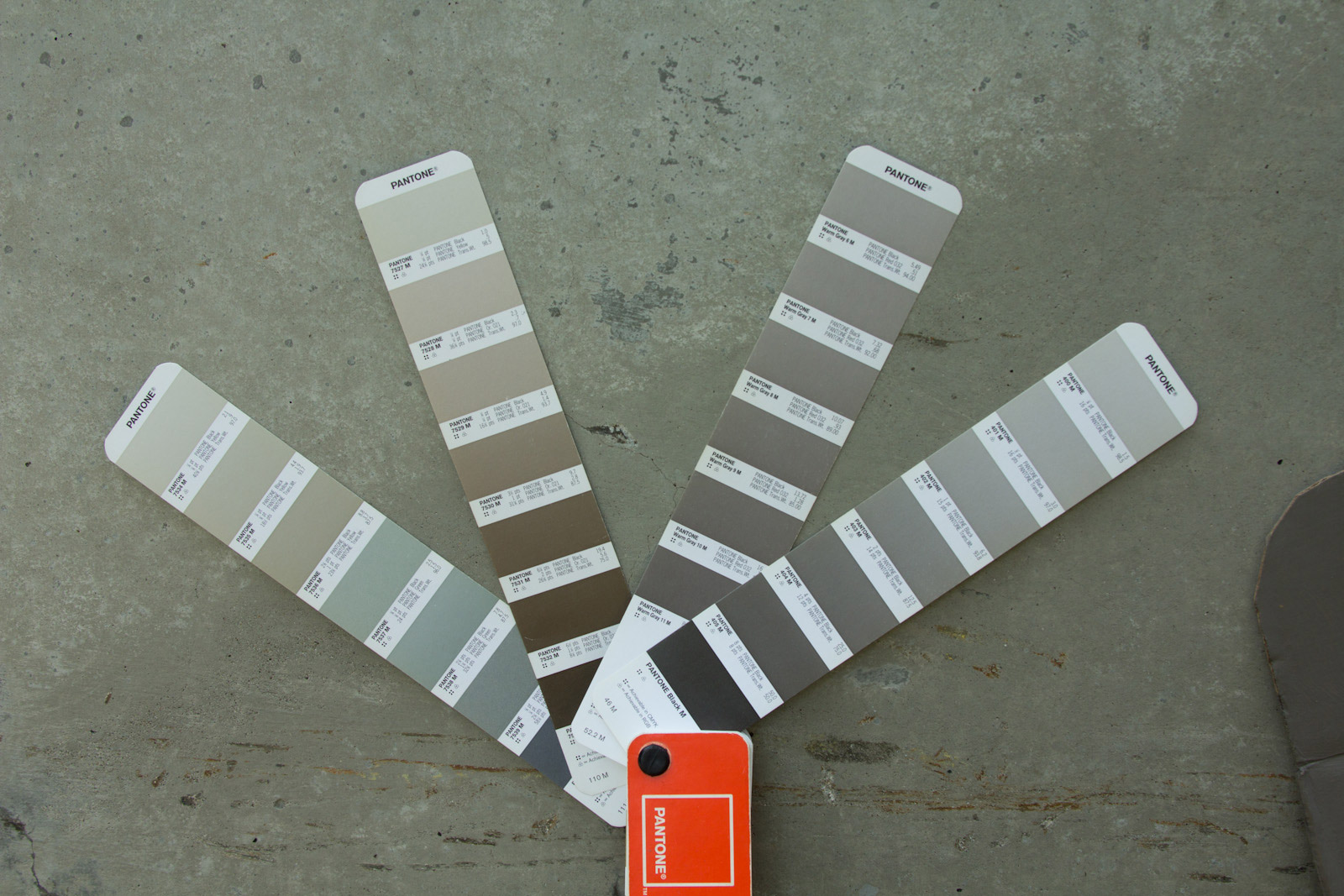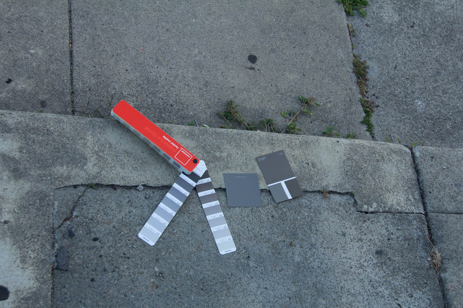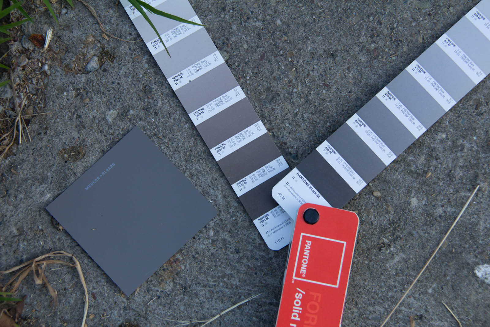 So to get started I whipped out the ol' Pantone book, turns out despite all the crap I was getting for warm greys, they are still actually a little more cool than most my medium concrete tests. I looked around at some other nearby grey pages, but eventually found that color 7531 was matching things more often. When it came to cooler concrete colors, color 405 came in handy, which is actually a neutral grey. There can be quite the spread of urban color from light grey sidewalks, medium concrete, old asphalt, to even super black fresh asphalt so the goal is try and aim for the middle.