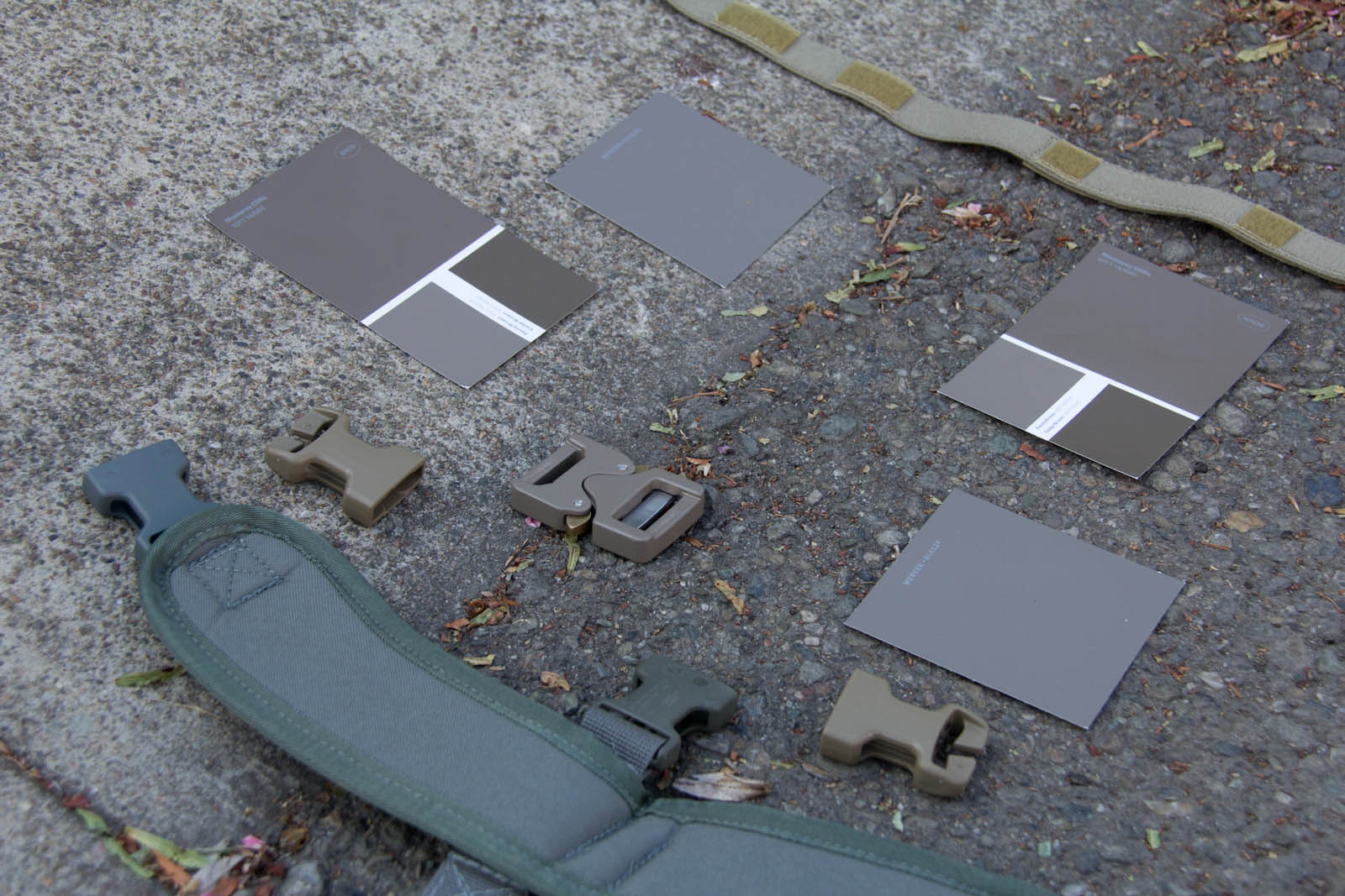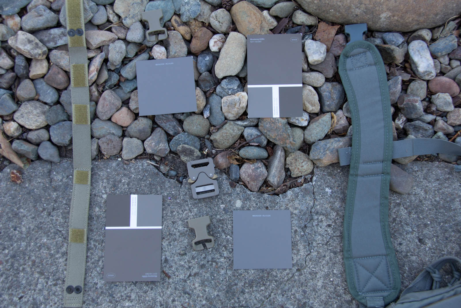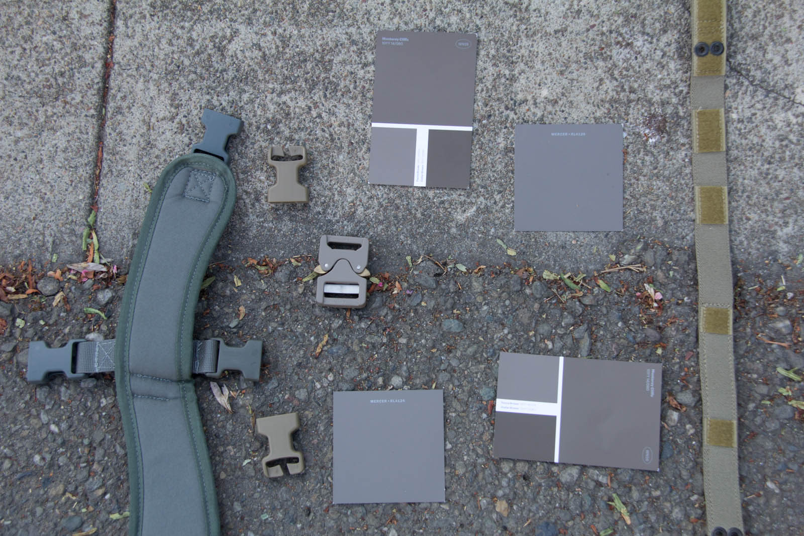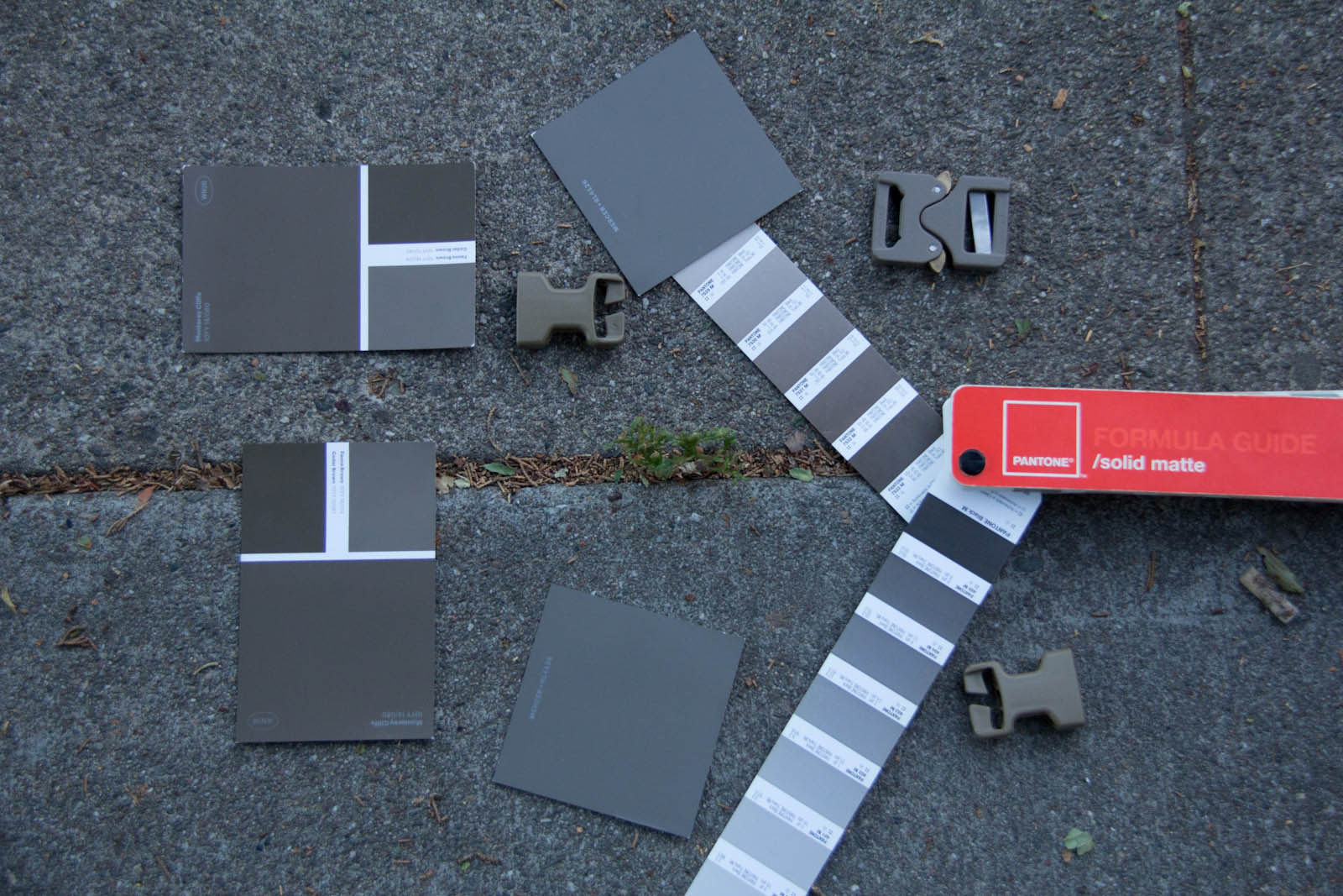 To expand my colors a bit and offer an easy way for others to get samples, I went on down to Home Depot to score some color cards. After more trial and error I was able to narrow things down to Fauna Brown 10YY 18/074 as seen on Glidden sample card WN26, this color happens to be very close to Elephant Grey as seen on recent Cobra Buckles. Additionally I found Mercer RL4126 from Ralph Lauren Paint cards at Home Depot to still be in the ballpark and to be more desaturated, thus looking closer to what people expect out of a grey. General observations from research so far in my area: