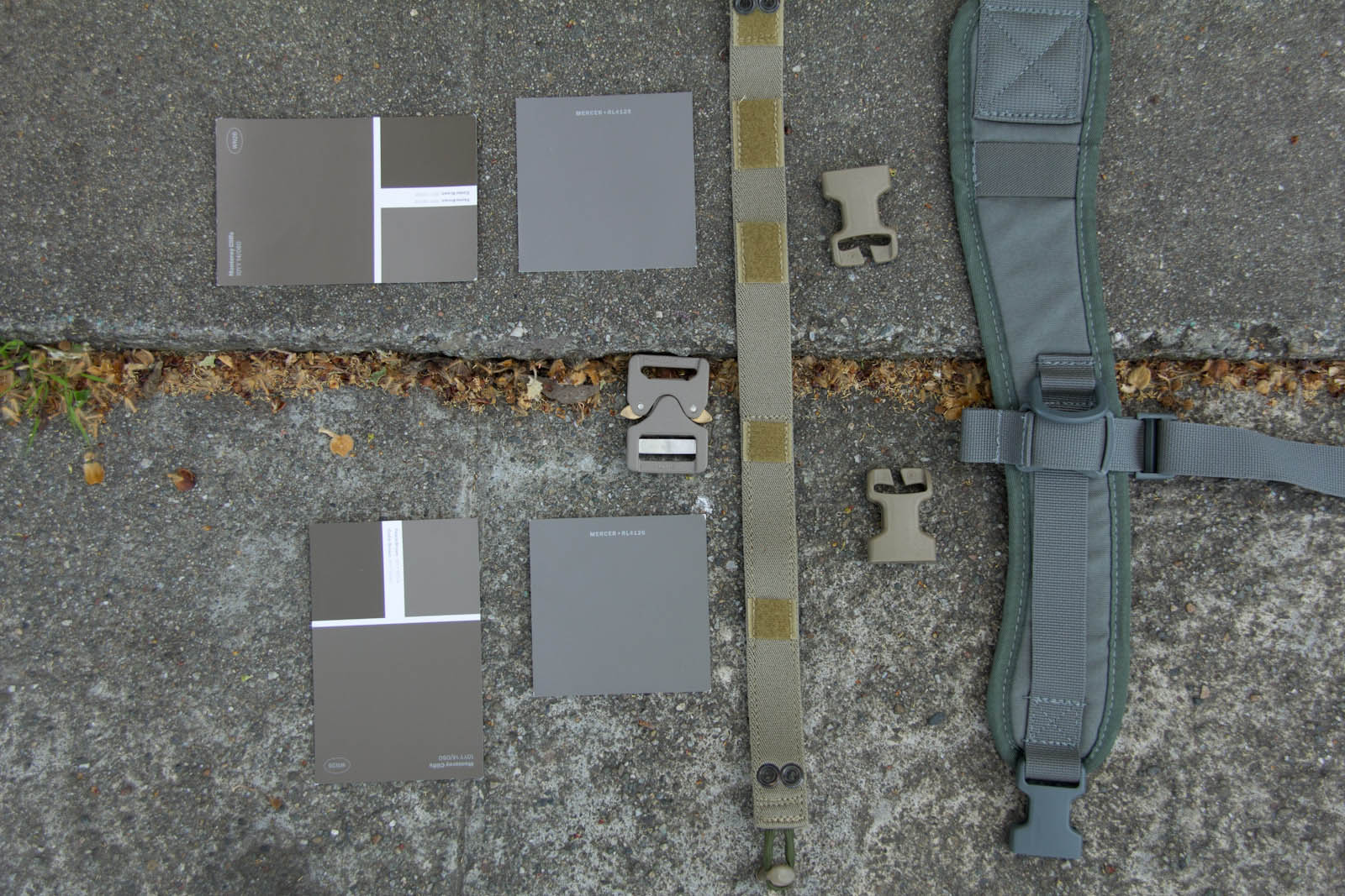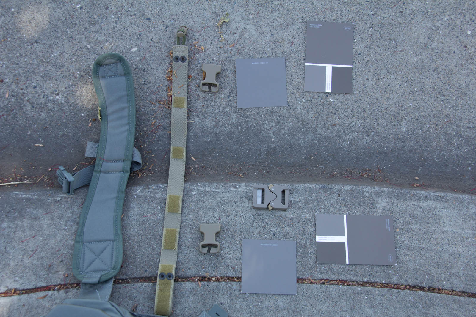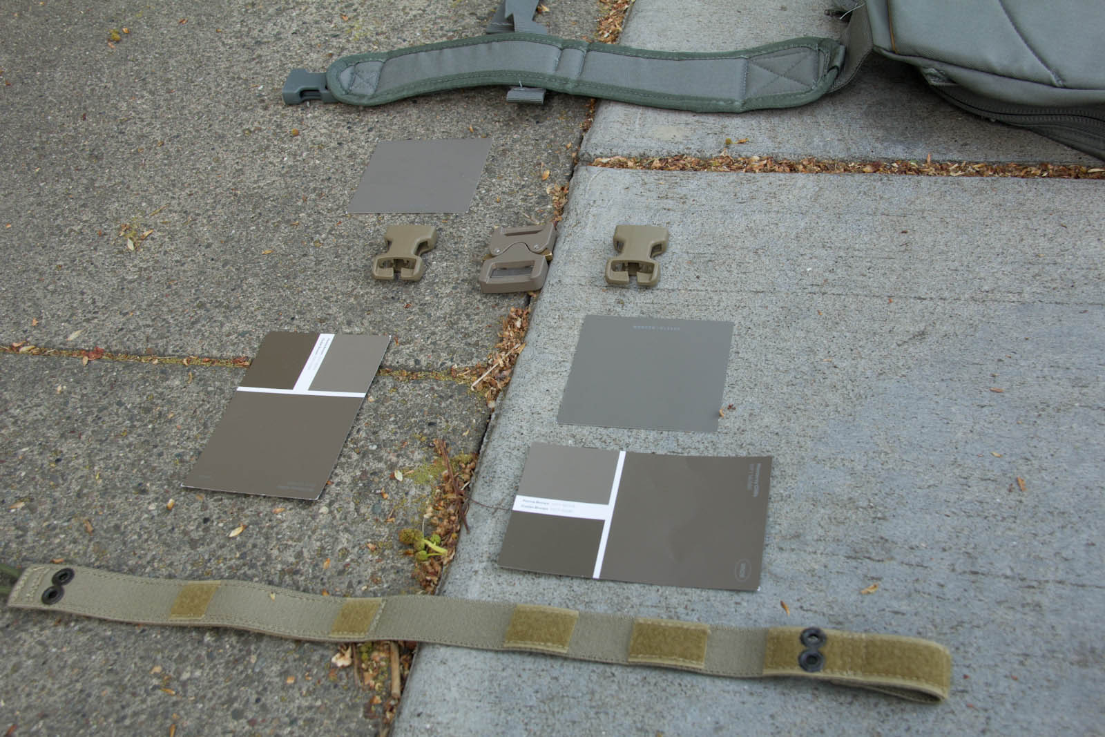 To expand my colors a bit and offer an easy way for others to get samples, I went on down to Home Depot to score some color cards. After more trial and error I was able to narrow things down to Fauna Brown 10YY 18/074 as seen on Glidden sample card WN26, this color happens to be very close to Elephant Grey as seen on recent Cobra Buckles. Additionally I found Mercer RL4126 from Ralph Lauren Paint cards at Home Depot to still be in the ballpark and to be more desaturated, thus looking closer to what people expect out of a grey. General observations from research so far in my area: