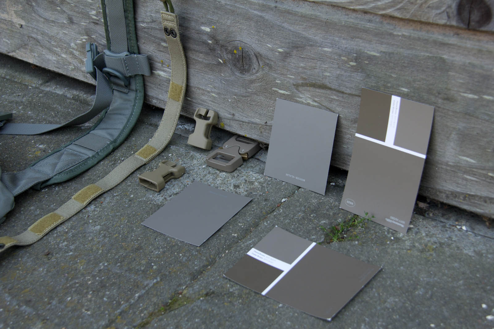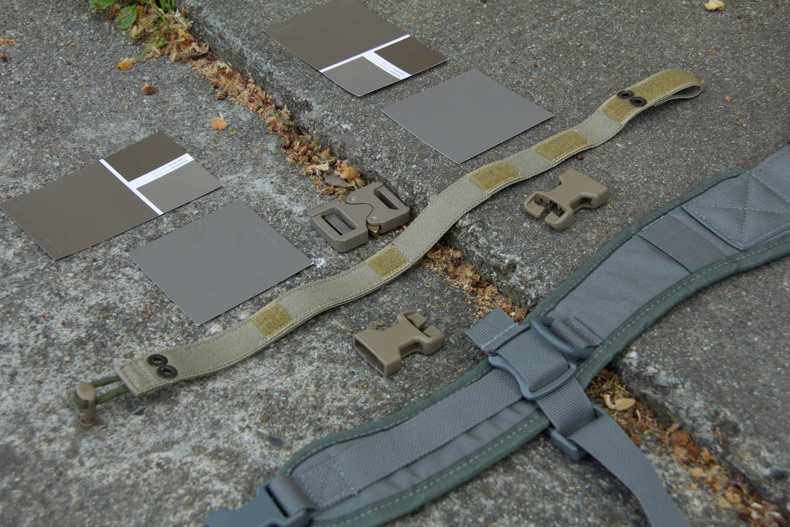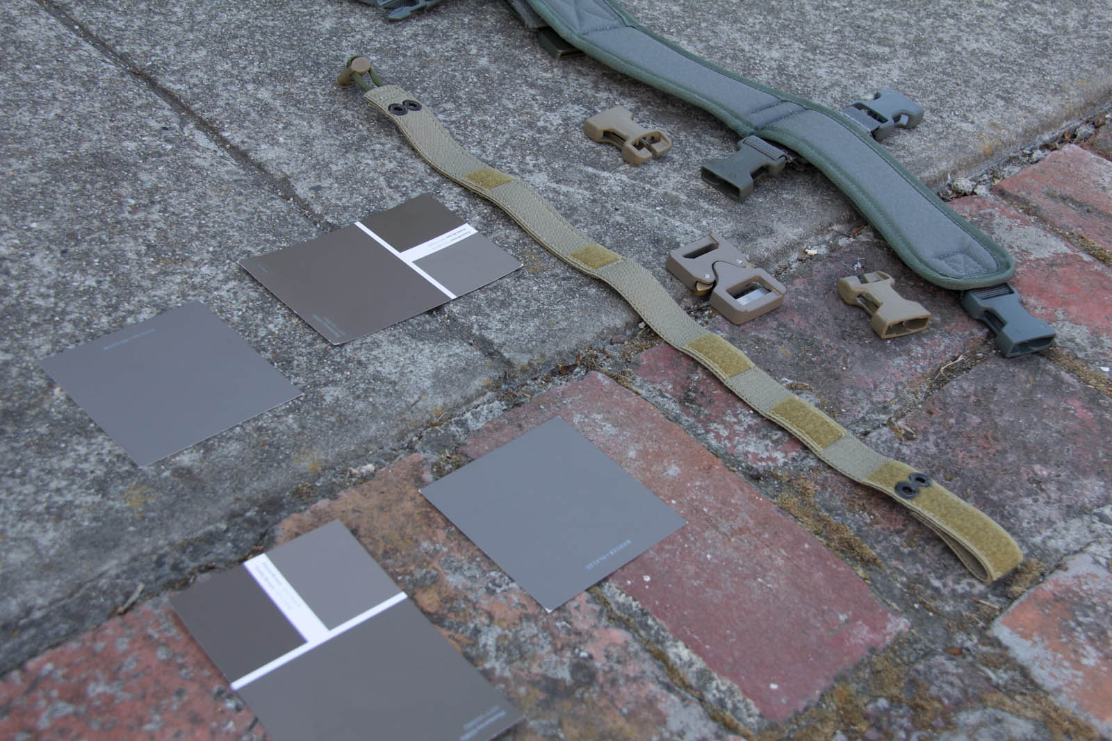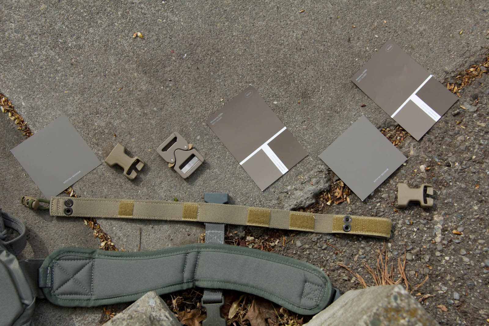 To expand my colors a bit and offer an easy way for others to get samples, I went on down to Home Depot to score some color cards. After more trial and error I was able to narrow things down to Fauna Brown 10YY 18/074 as seen on Glidden sample card WN26, this color happens to be very close to Elephant Grey as seen on recent Cobra Buckles. Additionally I found Mercer RL4126 from Ralph Lauren Paint cards at Home Depot to still be in the ballpark and to be more desaturated, thus looking closer to what people expect out of a grey. General observations from research so far in my area: