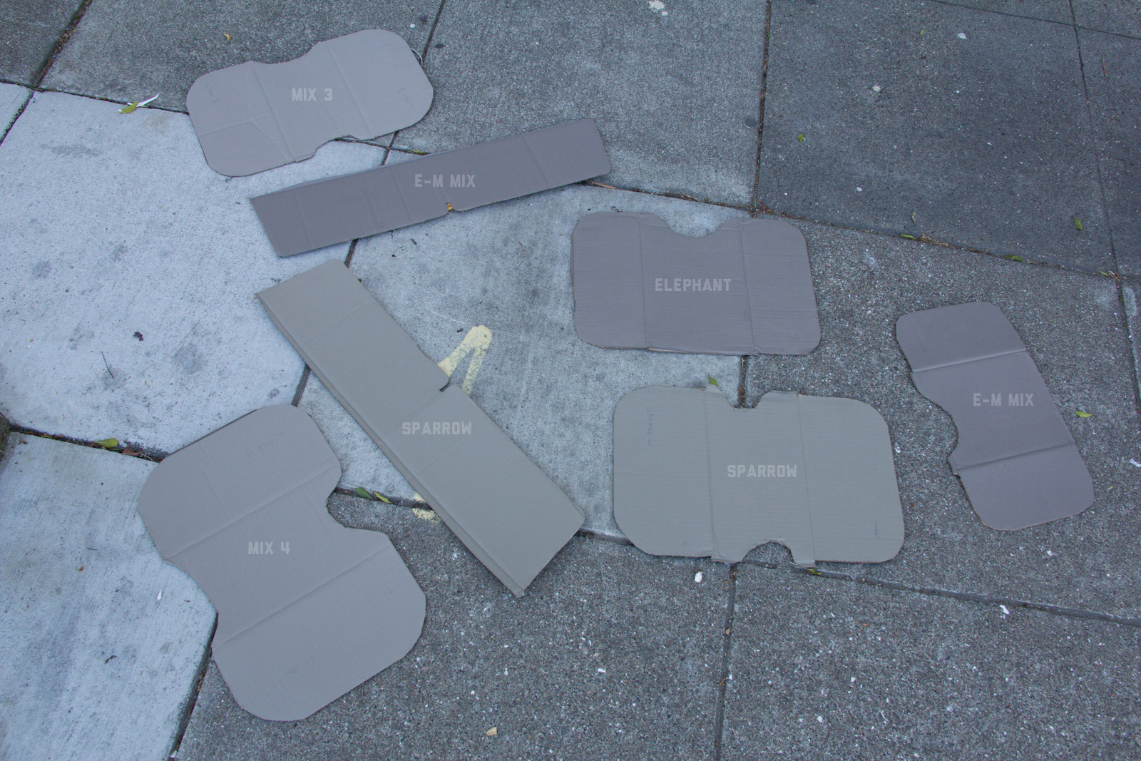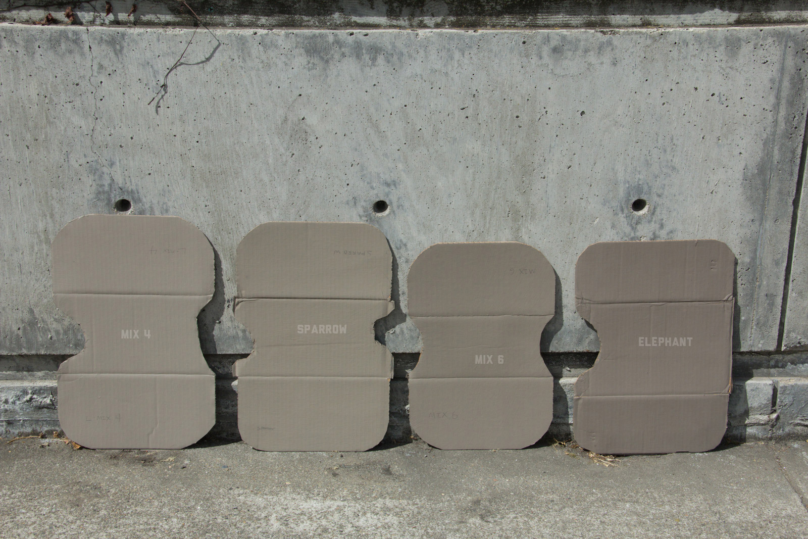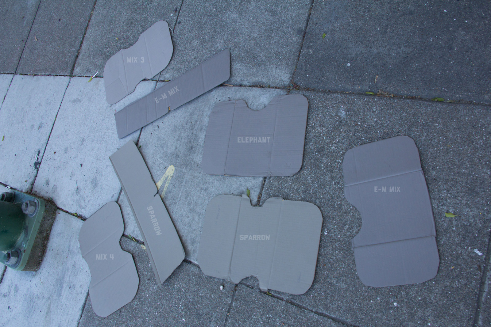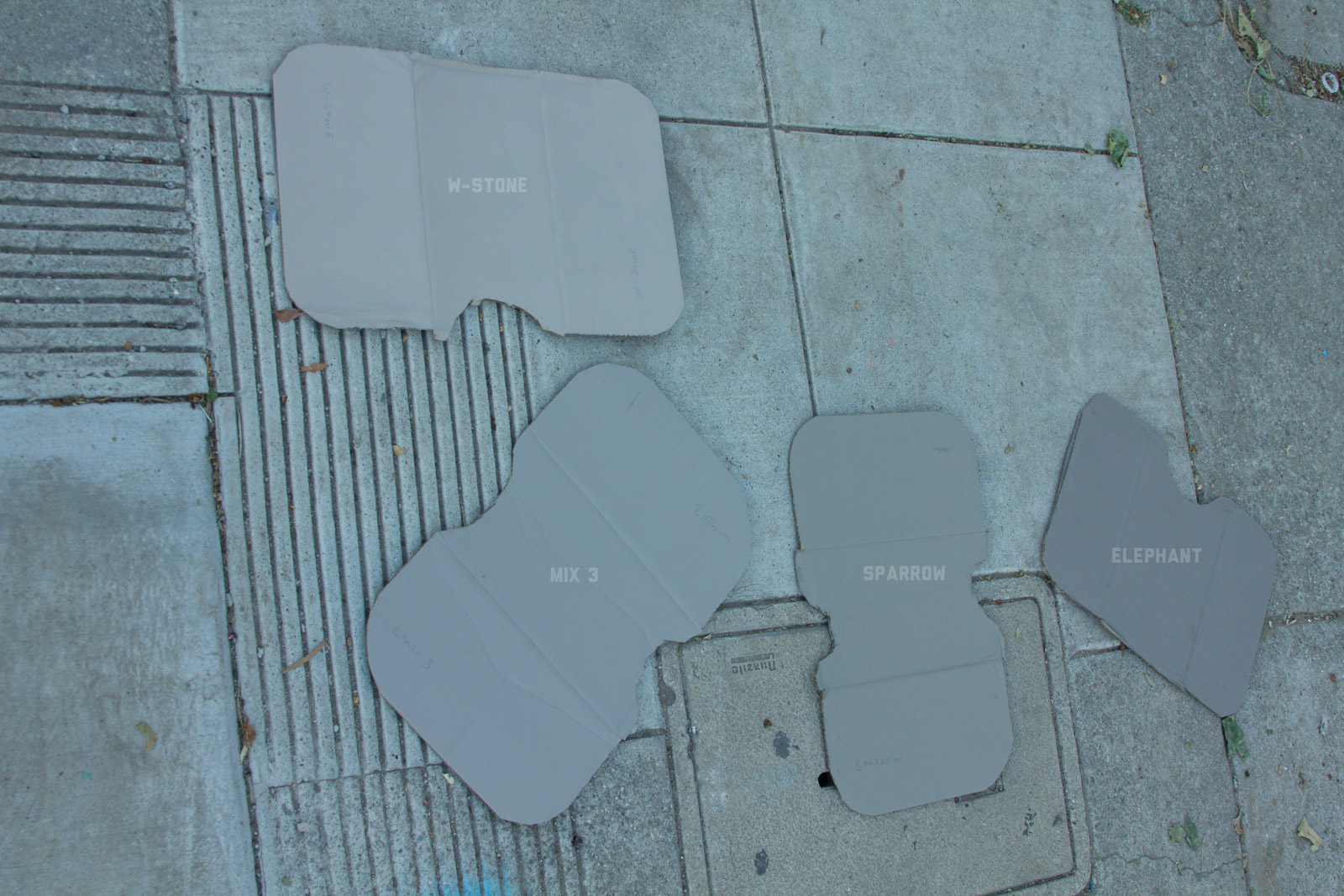 After some good feedback on this article I took the advice to try and investigate more concrete walls. As it turns out, most unpainted walls in my area are wicked bright, Pantone wise coming in around: 402 - 403, 7529 - 7530, WarmGrey 6 - WarmGrey 8, 7536 (on lighter end). I had my doubts hearing Crocodile (basically a desert tan) was being used in urban night ops, but after testing some lighter walls this made more sense. Based on this I got Wright Stone Tan 10YY 30/106 - card WN25 Glidden at Home Depot to add some lighter options to my testing. Instead of just small samples I also moved on to larger samples by painting cardboard chunks. For a more middle tone for my pile I also picked up Sparrow AF-720 by Benjamin Moore along with Brimfield RL4352 Ralph Lauren Paint, mostly as a light grey to mix with. By this time I dropped Mercer for looking too cool on most tests and in a bigger size the Fauna/Elephant had a little too much red, but was still good enough to keep around. Since Wright Stone Tan was going to be too rowdy on its own, I ended up with Mix4 for lighter end testing for a while. Despite enjoying sparrow for a light middle, it was showing just a little more green than wanted so after a couple more mixes I found Mix6 to be a nice result, being the middle of Elephant and Sparrow. I briefly tried Mocha, a color that looked good on the sample card, but with testing ended up pretty green.
