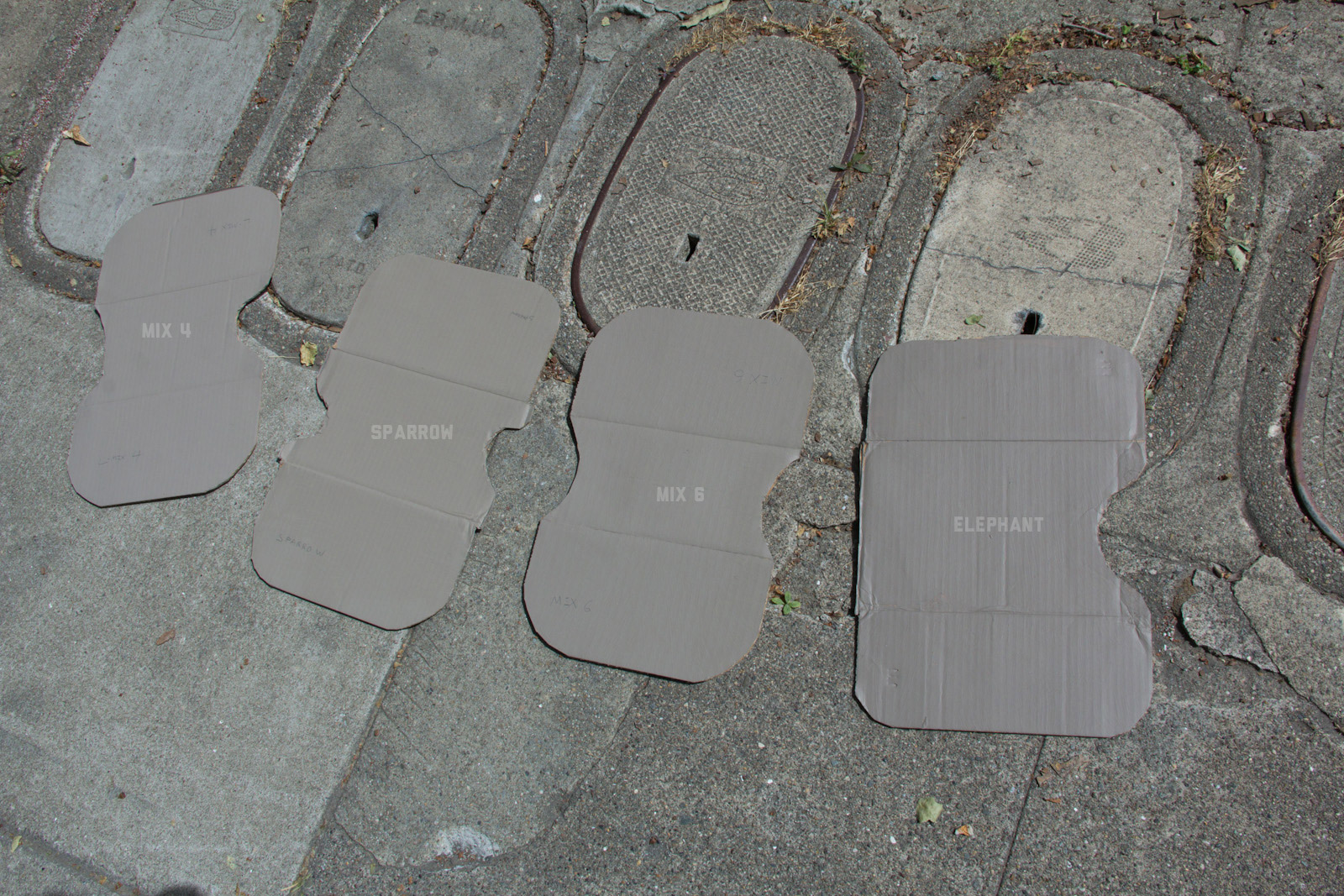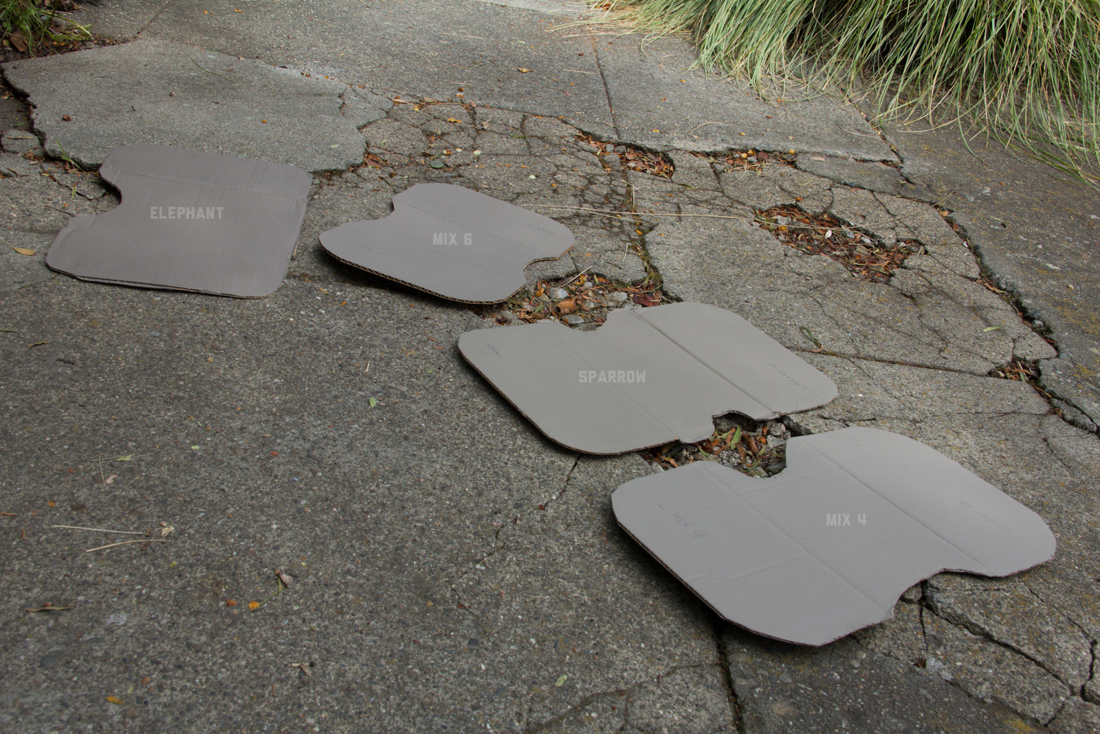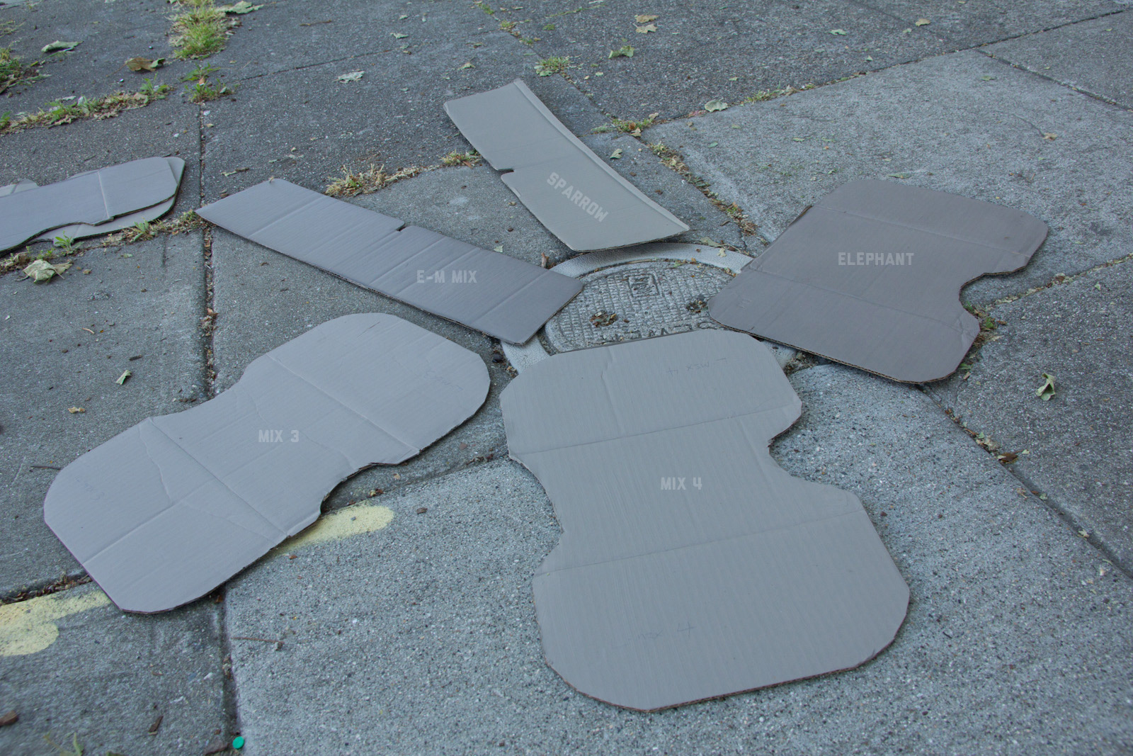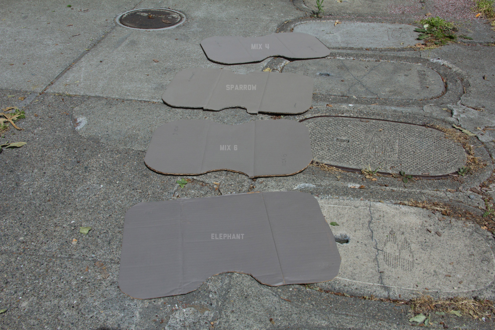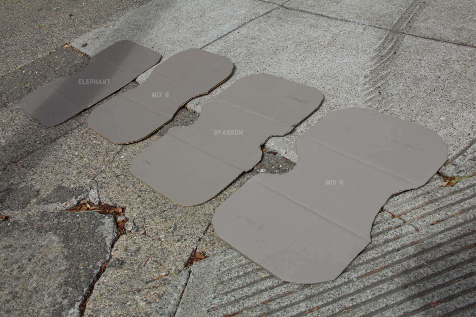 After some good feedback on this article I took the advice to try and investigate more concrete walls. As it turns out, most unpainted walls in my area are wicked bright, Pantone wise coming in around: 402 - 403, 7529 - 7530, WarmGrey 6 - WarmGrey 8, 7536 (on lighter end). I had my doubts hearing Crocodile (basically a desert tan) was being used in urban night ops, but after testing some lighter walls this made more sense. Based on this I got Wright Stone Tan 10YY 30/106 - card WN25 Glidden at Home Depot to add some lighter options to my testing. Instead of just small samples I also moved on to larger samples by painting cardboard chunks. For a more middle tone for my pile I also picked up Sparrow AF-720 by Benjamin Moore along with Brimfield RL4352 Ralph Lauren Paint, mostly as a light grey to mix with. By this time I dropped Mercer for looking too cool on most tests and in a bigger size the Fauna/Elephant had a little too much red, but was still good enough to keep around. Since Wright Stone Tan was going to be too rowdy on its own, I ended up with Mix4 for lighter end testing for a while. Despite enjoying sparrow for a light middle, it was showing just a little more green than wanted so after a couple more mixes I found Mix6 to be a nice result, being the middle of Elephant and Sparrow. I briefly tried Mocha, a color that looked good on the sample card, but with testing ended up pretty green.