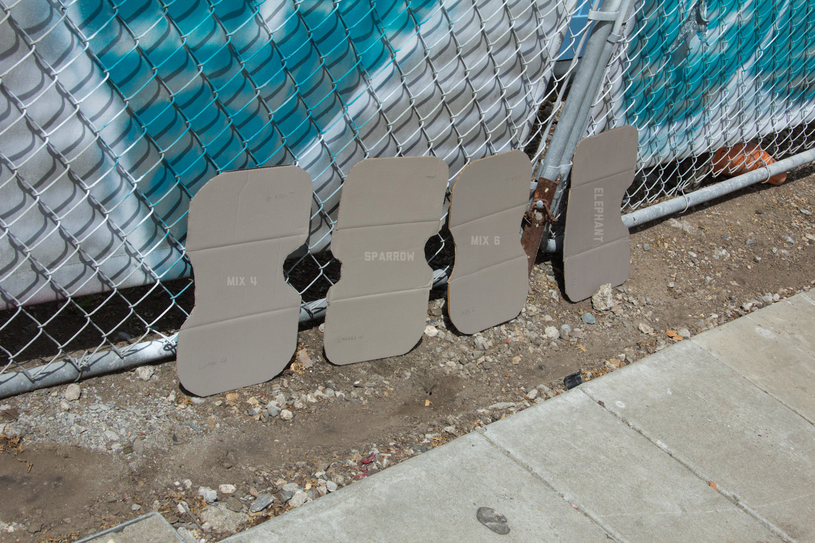 The color spread is pretty vast going from the darkest ground concrete to the lightest walls which makes this a tough choice on where to aim for on the spectrum. To try and put things more in context I started to take some misc city shots to see how they do on brick and storefronts to test how they blend on common highly mixed color environment situations. As expected about the only time I saw cool greys was when a building or object was painted grey, which wasn't very often. After this phase I'm starting to lean towards Mix6 as it has the middle ground concept, yet goes slightly towards dark which I think will match more with the varied colors of urban areas instead of thinking only about concrete. What say you guys?