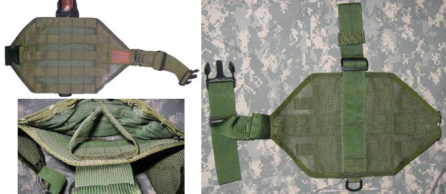 From here come the slight adjustments. The Phantom dropleg has no vertical SRB and tries to get away with just 1 leg strap. On that note, I bet it gets a bit floppy when loaded since the single strap is all the way at the bottom. I mostly feature this as an example of the direct to belt loops on the back. The ICE-TAC approach was to raise the PAL webbing space up and the leg straps appear remove-able. The AITES design starts off very standard, but comes with a not so standard option of a SRB vertical connection that can be a velcro wrap or a PALS connection strip.