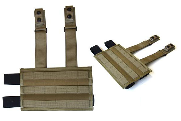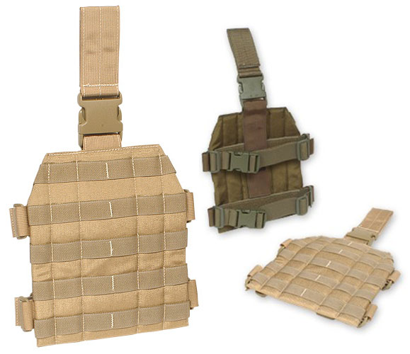 Next come the more mini-size droplegs. Spec-Ops makes one that is 4 PALS channels when most of the full size ones are 5. This size along with the placement of the single leg strap make it a more practical application of a single strap. The two long and separated vertical belt connections is a new approach and the main bulk of the dropleg appears to be mesh for ventilation. Tactical Tailor makes an even smaller 4 channel dropleg based on their full size version. This size mostly appeals to holding just a modular holster. Sord Tactical went slimmer in the other direction with their "Slick and Tight" leg pannel. They went with 2 legstraps despite the 3 PALS channel height and have a 2 strap vertical belt connection with even more spacing between the straps than the Spec-Ops one.