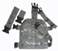 Breaking the classic shape, we get into the more unique designs. Blackwater went with a triangular shape with 1 leg strap. It also includes a fairly large inner pouch area for extra armor or a pistol. I question if the single leg strap is adequate enough when fully loaded, but the triangular shape should help this a little. HSGI uses a diamond shape with no vertical SRB and is one of the few droplegs to use mesh as a part of the main construction. Offhand I wasn't so sure about the mesh durability wise, but I've heard more than one personal reports that it has performed well for extended periods. The part mesh construction makes it one of the most ventilated dropleg for its size. I need to test it under heavy loads, but the diamond shape appears to help the single leg strap causing floppyness issue. Other users have told me that once the straps are properly adjusted that it works quite well. The main pannel has 2 layers to make a semi pocket for a knife sheath. Blackhawk makes another dropleg called the CQC tactical dropleg. This one is a bit proprietary in which it has no PALS and only works with Blackhawk CQC pouches/holsters. Not exactly my first choice, but the 2 vertical belt straps with Rotating "Swivi Locksters" SRBs are worth noting.