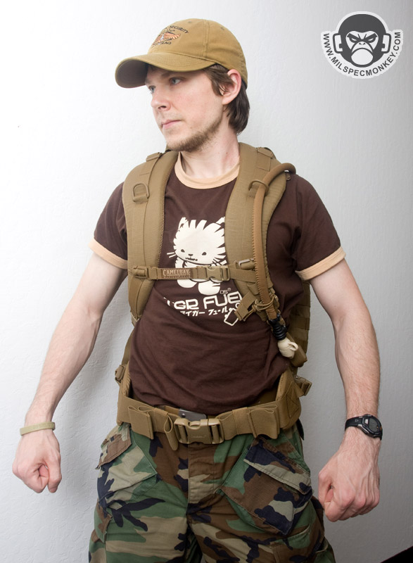 Camelbak has a good number of hydration carriers, but the Armorbak is the first optimized with the design intent to go on tactical vests. The majority is made of 500D cordura and is generally low profile with no additional pouches or compartments. To mount the Armorbak, 4 repair SRBs are used to attach to PALS webbing. Once connected the straps can be tightened to create pressure if desired which is great for spraying.