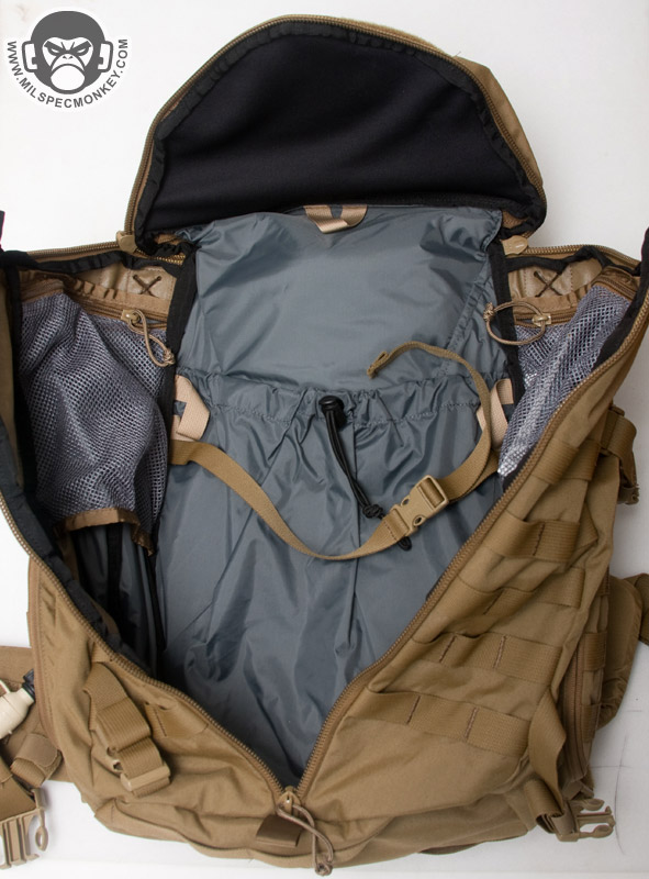 Camelbak teamed up Mystery Ranch on this one offering their unique trizip zipper opening layout. The attention to detail on the small features really makes this pack stand out as a quality pack. Starting off I'll note the Futura Harness is extra heavy duty offering loads of padding and support. Feel free to put whatever the hell you want in this pack since the harness strap system is built tough enough to hold loads usually applied to much larger packs.