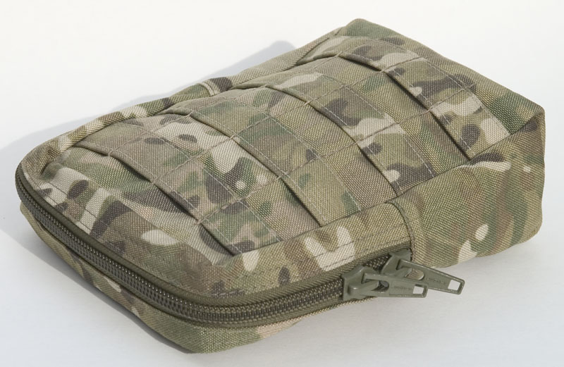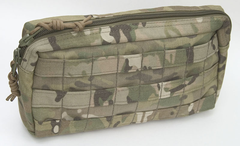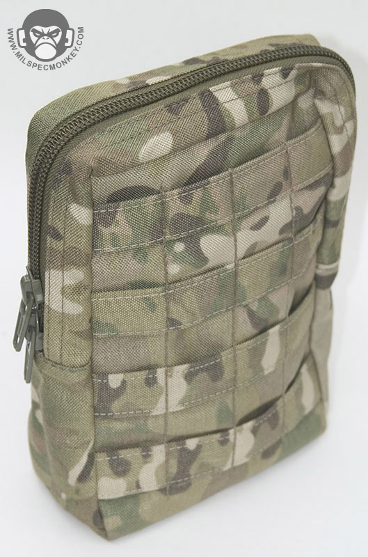 Notes: Good quality larger size pouch to hold more goodies. Bonus cordura PALS on the front to be more pro camo. Special "Lenzip" zipper requires a tug/pull on tab to move, preventing movement when forces stress the zipper in other ways. I roll with it on my plate carrier, but also works great for backpack expansions. Comes with Malice Clips.