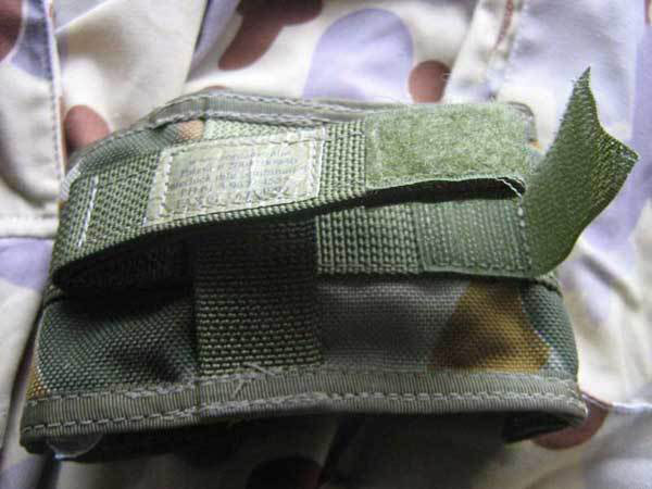 BFG took the velcro secured idea and enhanced the security level. The webbing layout starts similar to a traditional MOLLE Snap, yet at the bottom has a webbing strip that is hook on the interior and loop on the exterior rather than snaps. Once woven, the loop covered webbing tab is tucked under for decent constant pressure. For an important addition, folds are incorporated into the webbing straps to snag if the velcro seal is broken.