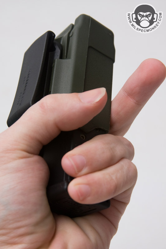 So not really my own prototype, but some mods I thought people may be interested in. I got a glock 19 not too long ago for a compact pistol option and have been experimenting with finding my favorite kit for it. For rigid pouches I snagged the Blackhawk CQC pistol magazine pouch and Safariland 074 (concealment) pistol magazine holder. I'm used to SIG magazines and have noticed Glock 19 mags are fairly short and stubby with almost no lip at the bottom.