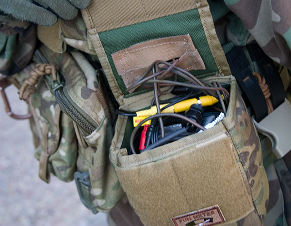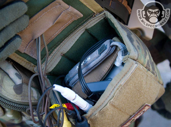 I started off with dumping my helmet cam recording goods in a GP pouch, but even with extra foam, things were still a bit shifty so I made this up. I'd rather have the camcorder upright, but have to do it sideways as shown to deal with the lame AV plug. Top layer is for the camcorder and even has an elastic holder. The mass of wires is a mess, but not sure what else I can do short of cutting the actual wires.