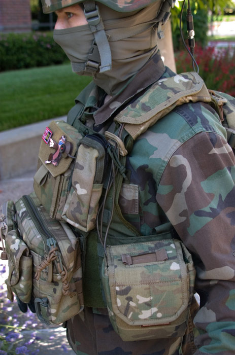 Took forever to get around to this, but finally got a chance to make a rough prototype. Concept on this one was to have a pouch that can hold a DSLR camera and be able to go from secure to in hand as quick as possible. It ended up being pretty honkn' big, but was the size needed to cover the camera and have the 45 degree extraction. The inside is Tricot foam so I can make velcro dividers and holders commonly seen in camera bags.