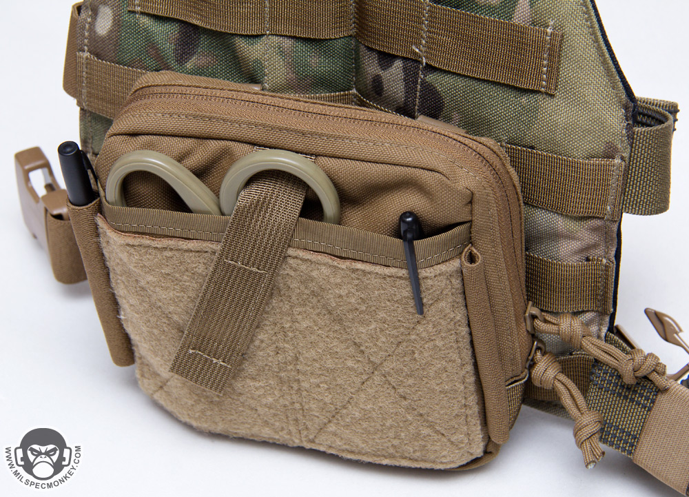 Made this guy with the concept of having an admin pouch that can actually fit something. When less filled the pouch can be as slim as most other admin pouches, however has the capability to expand out and hold approx 6 flashlight/multitool sized items comfortably. The quick ID flap also sets this pouch apart from most. Spaces include the ID pannel area, .5" depth frontal pocket, velcro sealed slim middle pocket for your important goods, and 1.5" depth main back pocket.