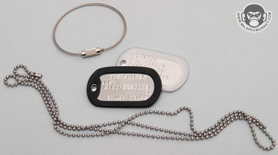 If you are looking for some custom dogtags for any occasion, I recommend checking these guys out. They won't censor your ideas so the only limit is the space on the dogtag. For those who like to see things first, their website has a snazzy preview mode that gives you a really good idea of the finished product. Many silencer colors are available and metal connection hardware including the fancy braided wire with screwlock.