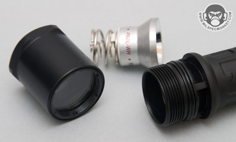 As a quick piggie-back update, the G2L now comes with an aluminum bezel to disipate heat quicker and to allow long run times without the worry of melting. The output for the G2L-BK with the Nitrolon bezel started at a maximum output of 80 lumens, leveling to a regulated output of 50 lumens. The G2L-BK with the aluminum bezel starts at a maximum output of 80 lumens and sustains a regulated output of 60 lumens. The total runtime of 12 hours will remain the same.