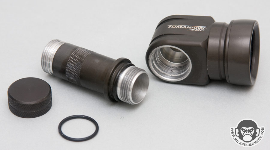 The Tomahawk is made up of 3 main pieces consisting of the main lamp head, battery tube which holds 2 CR123 batteries, and a bottom cap. When getting more specific: O-rings are also included for water protection, the metal clip with tube wrap for grip, and the finger loop. All materials are made for heavy use especially with the foundation being aerospace-grade aluminum. To change batteries the tube or cap can be unscrewed off. To change or remove the clip or finger loop the battery tube must be detached. The clip uses a classic ring to attach however the finger loop relies on contact with the main head / lamp assembly to keep it in place. This can be a little messy functionality wise since if you are trying to rotate the direction the head / lamp faces in, you can easily start to unscrew it from the tube and thus have the risk of the finger loop falling out even if the head and tube are not fully detached. To prevent this the clip and loop must be rotated counter clockwise only since when done clockwise the body starts to unscrew.