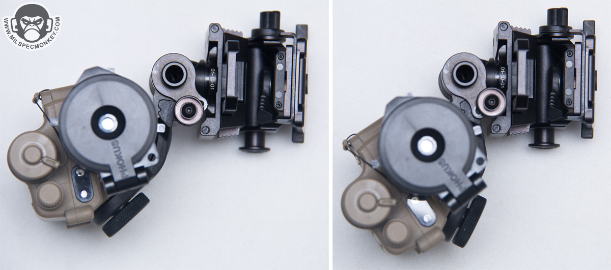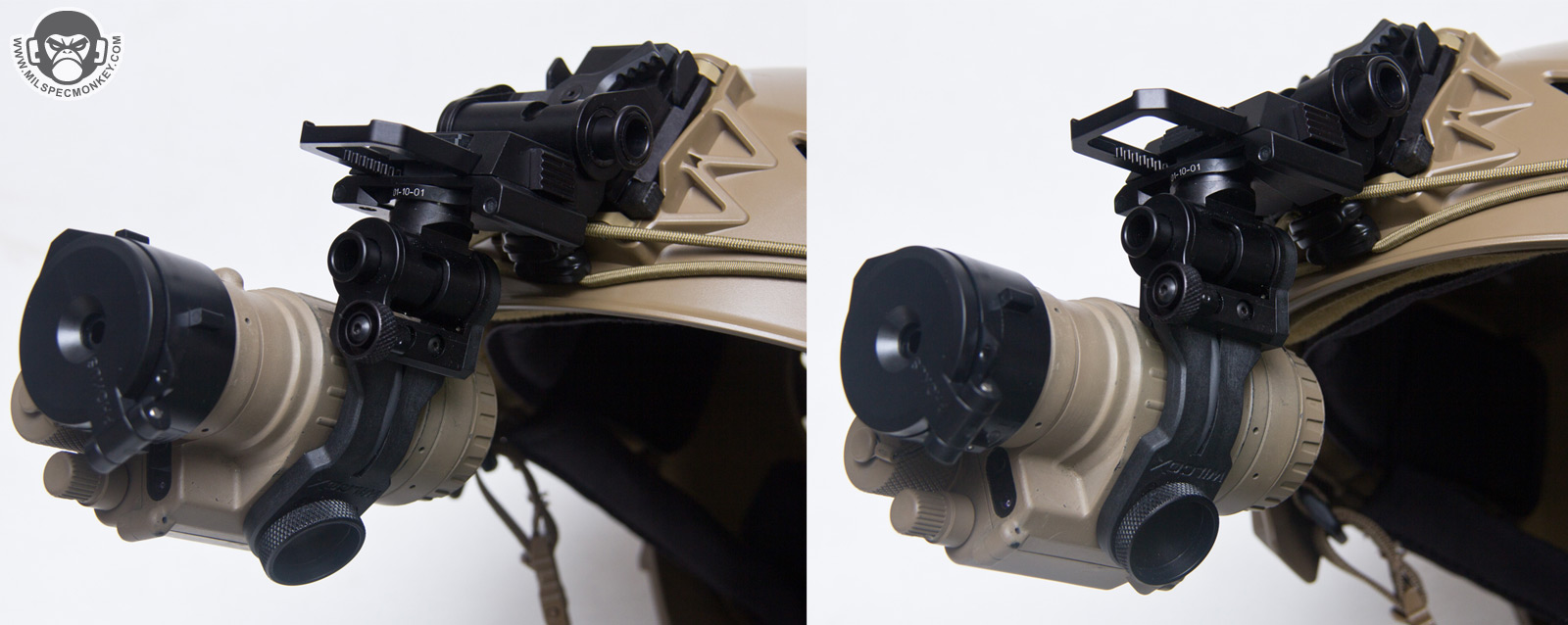 Experience wise I'm definitely new to NVGs, however I was fortunate to be able to get some good moving and shooting experience with them at the Costa Ludus RVET class. Despite there being more play in the mount than expected it did not feel floppy or loose even with heavy movement. The L4 G24 was overall easy to use for main NVG up/down action and even to do minor adjustments. The difficulty of putting the mount back in the shroud while wearing is more of a limitation of the shroud slot shape and I think it is understandable to make this mount compatible with the heavily distributed standard Army shroud.