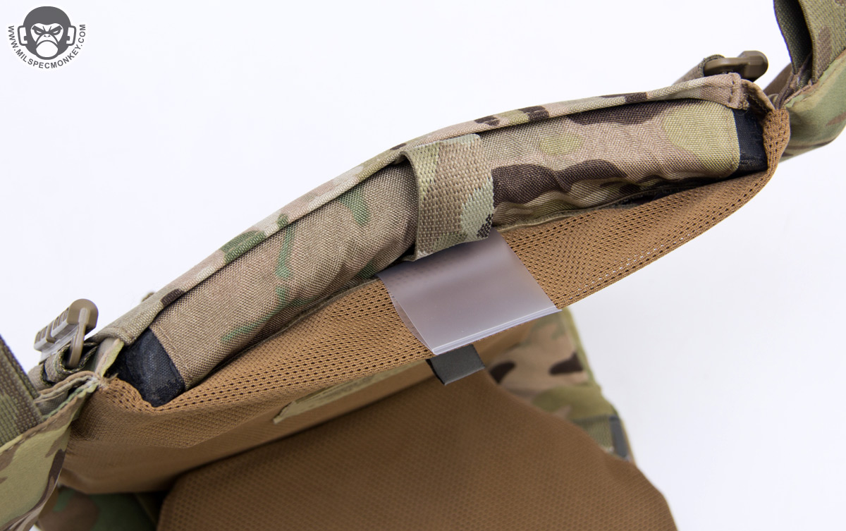 Although the Sons Trauma Kit can be placed into about any plate carrier, having one that has lower opening separate soft and hard armor external access should be a strong consideration. Usually the hard armor pocket has a pretty serious closure due to the intended carry weight while the soft armor pocket tends to have a lower key velcro closure. Due to this, one of the most preferred setups is to have the Sons kit in the soft armor pocket with the main pull tab sticking out through the opening allowing the easiest pull out access while being worn. An example of this would be seen on the First Spear AAC carrier, yet even on vests with separate soft armor pockets, having some other sort of retention is common. This can be seen easier on the Eclipse RBAV-AF which has the soft armor opening higher up rather than being at the bottom, which does make sense as the main purpose is to keep the soft armor in there even if the velcro seal gives out. For better or worse this causes enhanced retention on the Sons Trauma Kit, making it more difficult to extract one handed.