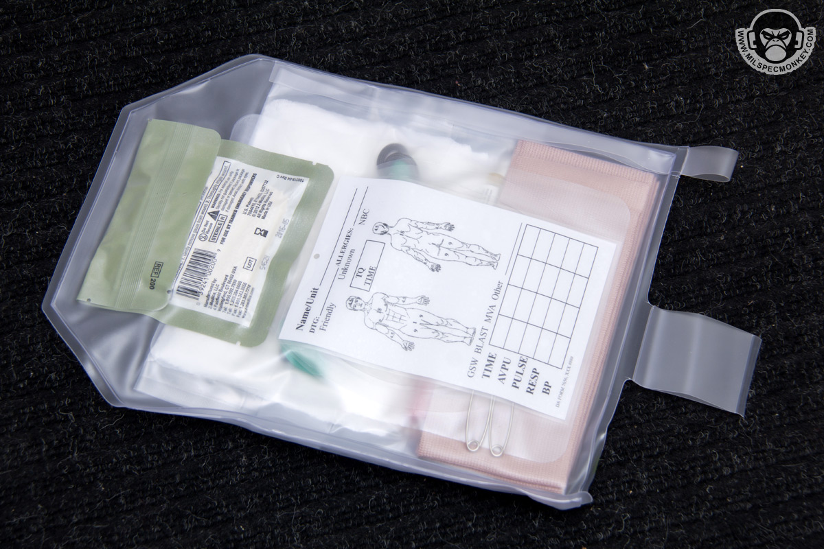 This is a pretty solid setup for stabilizing a gun shot wound and other wounds that are common with tactical dangers. Definitely noteworthy is there is no tourniquet so it appears on this loadout they assume the wearer will have one easily accessible elsewhere on their body. As another small detail the NPA comes wrapped in 550 cord, so you don't have to open any NPA packaging, but one will have to take the 550 cord off it before use.