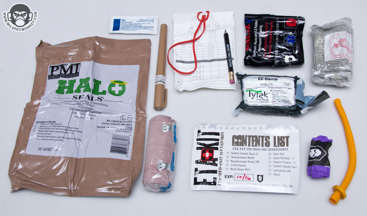 To complete the package, ITS offers their own trauma kit insert that of course fits great in the ETA Fatboy. It comes nicely vacuum sealed, but to get ready for actual use you'll want to open it up to then get the items placed in the pouch. I found this very intuitive as I didn't even look at the ITS site while filling the pouch, yet ended up with almost the same layout. The ITS ETA Trauma Kit includes what most folks expect out of a combat oriented medical kit these days comprised of:
