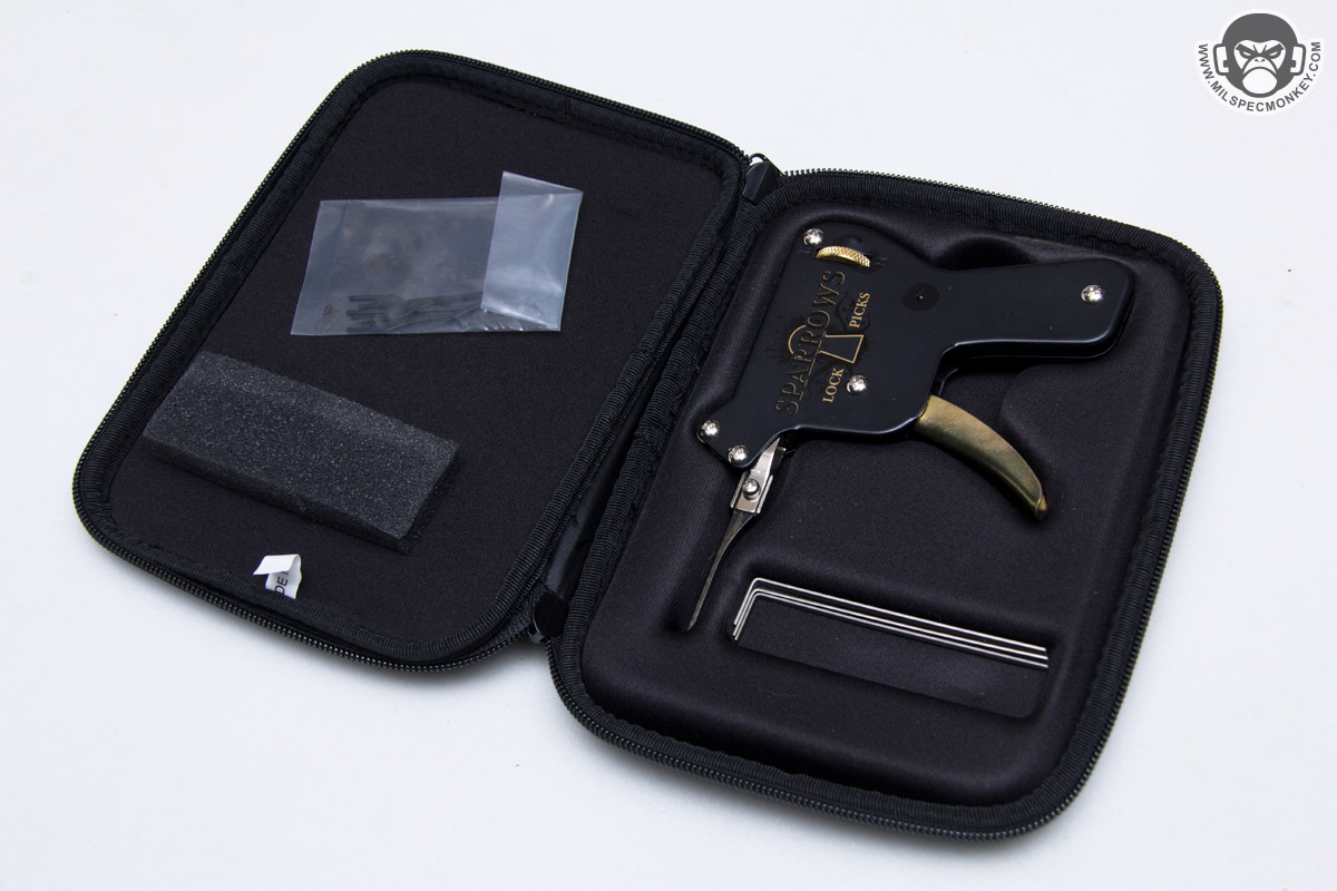 Snap guns have been around for a while, but Sparrows makes a pretty sweet ready to go set with their Flash Snap Gun. The main functionality of a snap gun is to push lock pins all at once to give a bump key like effect. Using a needle pick instead of a key makes it a more flexible tool for a variety of locks. With even just minimal practice the snap gun can be a very fast lock pick device where defeating a lock commonly can be done in 1 to 3 "snaps". 3 standard needle picks are supplied while an angled needle is even included for low and tight working areas. I've given them a good beating so far and they have been holding up as expected being similar to sparrows hand lock pick tools. 3 varied size tension wrenches are included which is good as they are still required to pick locks while using the snap gun. Offhand I wish they were the twist style wrenches for comfort, but straight will make do.