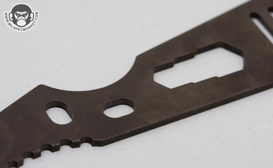 Although not considered a knife, the JB2 makes for a no joking around emergency tool. The general shape appears to have been inspired by similar looking Strider knives and is confirmed by the Strider logo. The main functionality is the 270 degree cutting hook. The opening is smaller than some other designs to prevent accidental snags, yet is plenty big enough to get heavy webbing inside. Once inside you want to make sure and keep the blade moving along the material to get a nice quick cut. Despite being pretty darn sharp, using it in a chopping only motion will not give great results. It is easy to miss, however there is a carbide glass breaker on the bottom for making short work out of windows. To cut down on weight, cuts were made into the frame which were done in a clever manner to form tools. There are holes to create an oxygen tank wrench and a slip wrench area for 3 hex sizes. At the end are slots for securing the strap that connects to the supplied pouch and a lanyard hole. The pouch design is functional, but my main concern is if you let the SRB flop down upon release, it can cover the glass breaker. Thus if possible I recommend grabbing both the handle and the SRB in your fist to make sure it doesn't get in the way of emergency functionality. The JB2 is compact and the weight is fairly low, but as a downside the grip isn't the most comfortable due to the whole piece being thin. It is plenty functional, just not a cushy ride. If in the market for a low profile yet full business shroudcutter, be sure and check out the JB2. It works great mounted on your kit or in your vehicle.