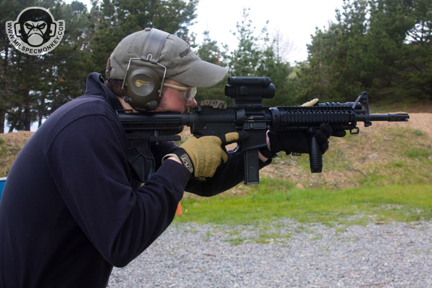This allows the user to easily go from a low ready / patrol position to a firing position in one smooth motion. When used this way, it also places the weapon up higher than traditional stocks so the user does not have to raise shoulders or lower their head nearly as much. A big thing I think some people who don't try the DuoStock miss, is that there is still a good chunk of traditional near-flat space on the stock. This allows the user to choose whichever platform is best for the situation which can certainly vary between whether armor is worn and shooting positions. The feel of the cheek weld isn't quite as nice as some of the fancy modular stocks, but gets the job done. Currently only available in Black, but made in the good ol' USA offered in MIL-Spec and universal sizes for the AR-15 platform. For those who feel pretty "meh" based just on looks, I highly recommend giving the DuoStock a try first. The design could be modernized, but I feel the functionality has real merit rather than just being a gimmick.