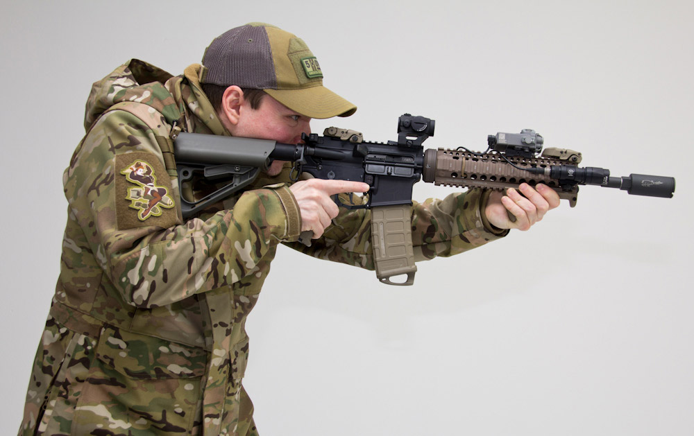 For another seemingly small yet useful design feature, the bottom corner is nice and rounded to not only make the stock very low snag, but is great for smoothly going from a patrol (low) to high ready position with the rifle. The curve is enough to be appreciated for this functionality and still keeps the general expected shape for the rest of the shoulder pad zone. The butt has a slight angle to it which works well for using both slick and with armor, and sports an integrated rubber-like shoulder pad for additional comfort and grip. I'd say the grip is about medium, where it could perhaps be softer for more grip, however would likely be less durable.