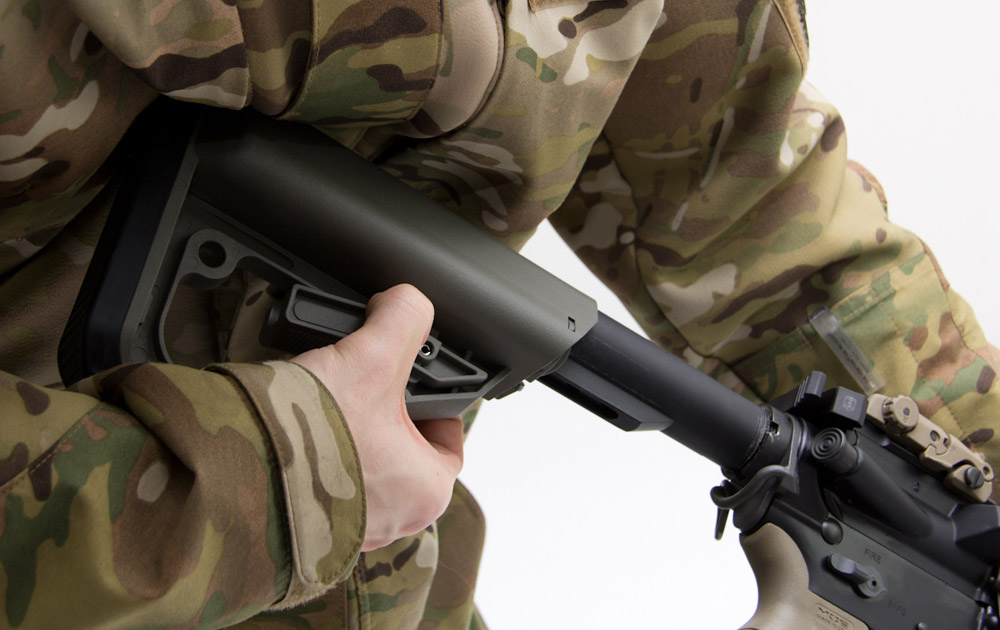 The overall TI-7 feel is solid as it uses MIL-SPEC materials with metal components being stainless steel. Currently the main colors offered are Black, Flat Dark Earth, Olive Drab, Foliage Green, however upon request appears you can get cool guy ones with US flag treatments and even other training colors such as blue. Available in both MIL-SPEC Size and Commercial Size Extension Tubes, at a great price point for a stock of this class. Seemingly just another stock at first, the balance of a simple / clean shape with clever design enhancements makes the TI-7 worth checking out.