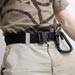 Another pant loop conflict seen on rigger's belts is usually they sport a big ass metal v-ring. Wanting to keep the backup carabiner clip-in capability the Maverick has a webbing loop that keeps the functionality while also dropping a lot of weight. One still needs to press down a bit on the clip-in loop to make it easier to pass through pant loops, but it is a hell of a lot easier than dealing with big metal hardware. Once in place the loop is pretty nice as it stays rigid enough to not collapse while being generally low profile.
