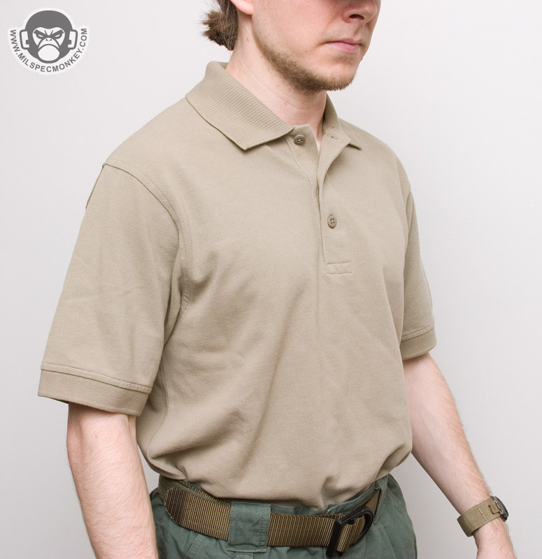 A simple polo shirt but done proper. The shirt will not shrink and will keep its color much longer than typical shirts. Using 100% cotton pique knit, the shirt has a nice soft feel. Other features include a no-roll collar, pen slot on left sleeve, and the fabric is great for embroidery. Looks like this one will last a while, will keep you updated on durability. Many classic and mil colors available.