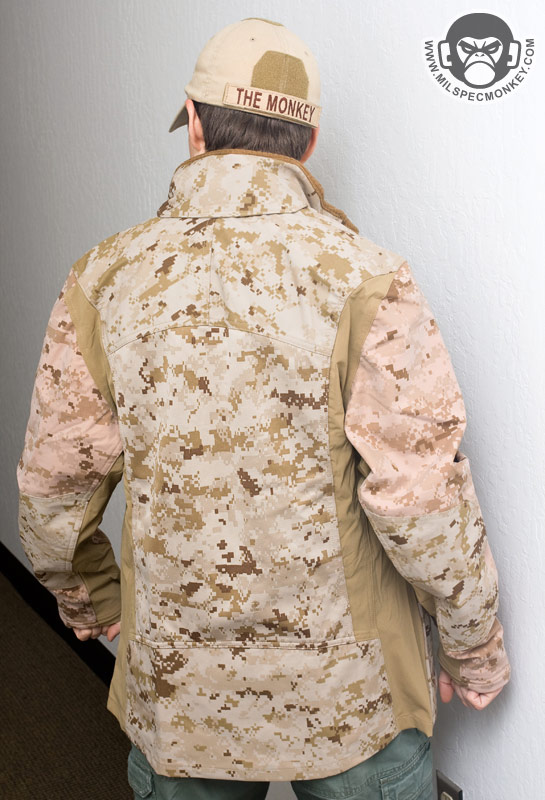 -Shoulders are reinforced with water-resistant Gore-Tex fabric to keep shoulders from chafing, while a secondary panel of the same Gore-Tex fabric in the lower back protects against water seepage below the line of a marines body armor.