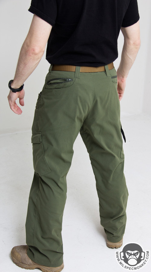 Usually the key to pant usability comes down to pocket layout and the STL I does pretty good there. Starting with the cargo pockets they are slanted a little to help with access and are non-billowed to stay lower profile. Opening with 2 pieces of velcro the interior has 2 extra dividers for pistol mag sized item organization. I would have preferred these dividers be on the side closer to one's body to reduce flopping even further during heavy movement, but being on the away side they are likely easier to access. The hand pockets are a fairly standard size, appropriate for looks yet not exactly roomy. As a nice touch the opening edges are wrapped to give abrasion resistance for clips on gear like knives and flashlights. On the right side is a bonus small change type pocket which can be good for smaller items to reduce item fishing. Some folks will dig it, however it does get in the way sometimes on my personal wallet insertion. There is a frontal thigh pocket on the left side, which works out good for holding my smaller sized smart phone. I'm not sure if making it look lower key is the excuse for only having one, but I wish this pocket type was also on the right side as they are very handy for quick access while sitting / driving.