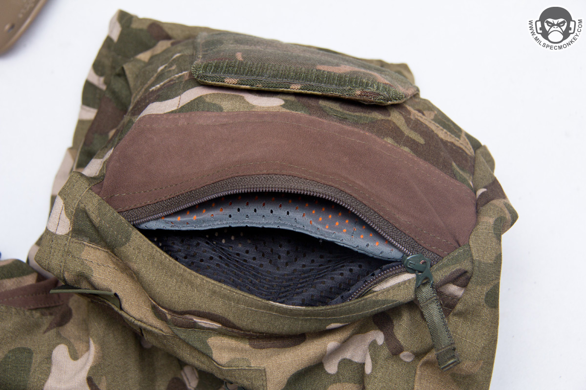 Getting into pockets the main side hand pockets are pretty typical in size and depth. The interior fronts have a nice soft material to be gentle to your hands or electronics. On the right side pocket there is an additional covert zippered pocket, so sneaky I missed it during the photo session. This can be useful for both concealing and retention of sensitive items. Moving down a little over on the front are some smaller pockets good for folding knives or pens. Typically I'd like larger pockets here, but the way the cargo pockets are sized and placed there isn't much frontal thigh pocket placement room. What would be called the cargo pockets are done a bit different than usual. Not quite as tall since they don't have flap openings, but pretty wide they have zipper access on top and towards inseam sides. The zipper access gets around issues found with velcro such as noise and long term retention, however the openings are certainly more slim as a result. These cargo pockets are fairly optimized to hold one rifle magazine type item, but between the inner sleeve pockets and the slim opening I found it difficult to stow notebook like items quickly. I can't quite get the quick dump pouch use out of the cargo pockets that I'm used to, as a trade however, I do get enhanced item retention. Despite keeping generally flat in appearance on their own, if you can get passed the opening issue, there is plenty of built in billowing to stuff a decent amount of goods into the pockets. There is even a bonus external pocket on the cargo pockets, about pistol mag sized. A flap with a little bit of stiffener is used to offer a little bit of retention. I see this as a no noise priority design, however wish the flap was longer to give more item holding options and further increase item retention. As is, it helps hold the item in better than nothing, but not obstacle course ready. During class I made decent use of it as a flashlight pocket, yet as expected it did fall out a couple times.
