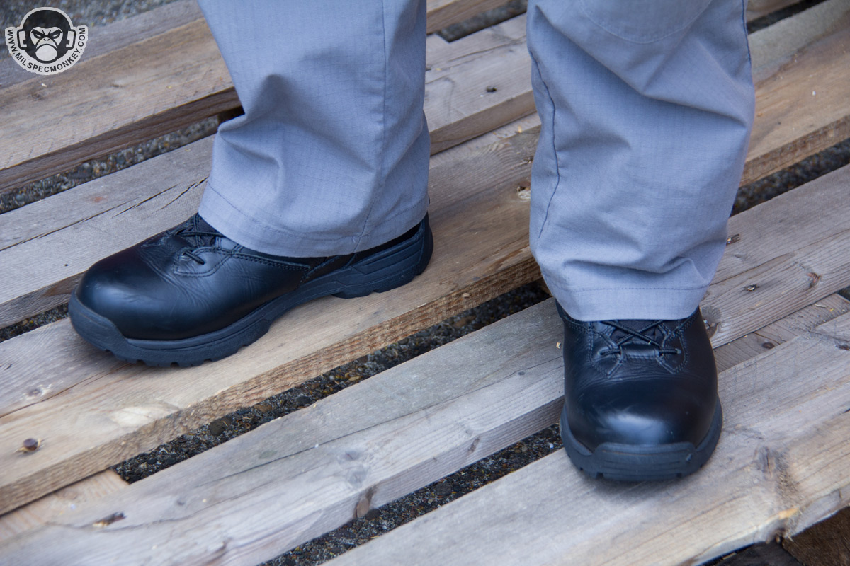 One of the design goals of the Side Zip Duty Boot was to have the support of a tactical boot while having the running shoe type comfort and I think First Tactical achieves that quite well. The break in period for me was quite minimal where my only complaint was they were a little stiff leaning forward, say if you are trying to do a calf stretch, otherwise very comfy with a nicely padded interior. After logging in some miles in the boots I was able to get the flexibility vs support balance I was looking for. I don't know much about tread design, but the tread appears to be a good mix of chunky and minimal for varied terrain. You will get traction and low noise in urban areas while still having enough tread depth and flow to deal with some muddy areas. I'd say the only possible small con I can think of is there is no obvious fastrope notch on the sole that seems to be incorporated to many boot designs these days. That said, if you don't like boots with exaggerated arches, you will probably like the First Tactical Side Zip Duty Boot series and the sharp angle arch zone can help some with fence climbing work.