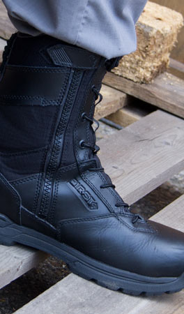 I came into checking out the 8inch Waterproof Side Zip Duty Boot with pretty low expectations so it was nice to be pleasantly surprised to find them to be the zipper boot I've always been looking for rather than just reinforcing disappointment. Not only are zipper boots convenient, but can save critical time for tactical applications. The zipper isn't the only important part of the boot however and the Side Zip Duty Boot does a great job being a full featured comfortable boot while still offering great protection. For those who are around folks that seem to commonly drop the breaching tools in the wrong place they even have a safety toe version. Only the black color is currently available, but there is a 6inch boot version offered for further variant options.