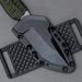 There are some decent sheath attachment options out there like Malice Clips and Blade-Tech Tek-Lok setups, but they don't always have the spacing needed or allow for desired mounting rotation. This is where the MatchPoint USA AMP series comes in handy to offer more mounting options. The basic idea is the platform is a matrix of .215" holes spaced at 3/8" (hole center to hole center) that has belt loop slots on the ends; currently in 1.75" and 1.5" slot sizes. Overall size is approx 6.375" x 2.375" at .2" thickness, and hole matrix zone being about 5" long. The 1.5" version is very similar to the 1.75" version, just with tapered down slots at the end. MatchPoint calls the material Tufmax 720 which is on the stiffer side, but does offer good durability and flex to conform to one's body. Rigidity can be a tricky decision as too rigid just won't contour to anything while too flexible will cause your gear to be floppy. I think MatchPoint made a reasonable balance on the AMP finding somewhere in the middle.