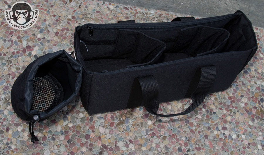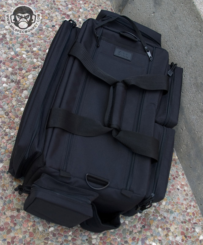 The 5.11 Tactical Range Ready Bag makes for, as the name states, a sweet range bag. At 24” x 16” x 10” one can also easily use it for a general gear bag. Made of mostly 600D polyester fabric the bag gives a nice quality feel upon first touch. Virtually every pocket is padded so you don't have to worry as much about metal and metal banging or rough handling of the bag.