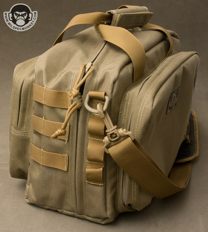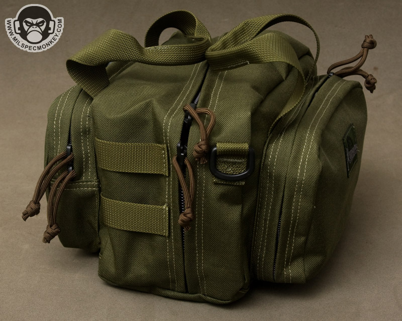 For a smaller bag the Jerobam gives some nice heavy duty gear holding possibilities. The size footprint works well for medical or small range bags and if you end up weighing it down with all ammo, luckily a padded shoulder strap is included.