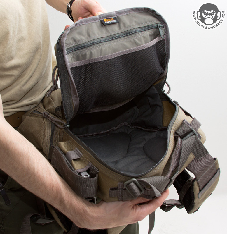 Based on the old Typhoon Gearslinger, which was based on a single strap design, it appears the design has been resurrected in backpack (2 strap) form. Since this size class is fairly taken care of by the Sitka and Noatak I can understand the concept to make it more like a traditional backpack to offer more small backpack options to Maxpedition's line. I suppose the Pygmy Falcon-II is the only other design that comes close currently.