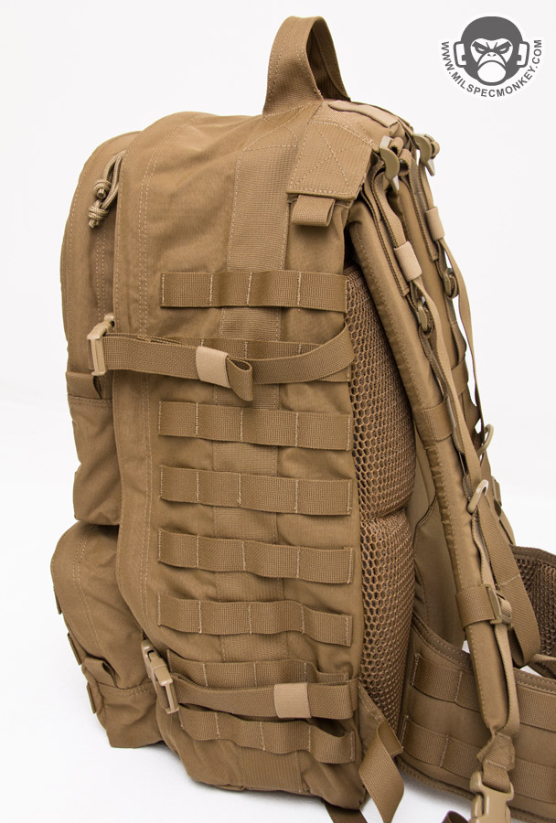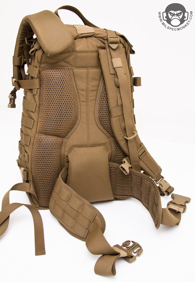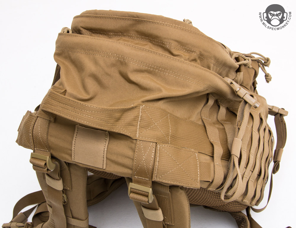 The attention to detail in general is appreciated, the smaller things like getting elastic loops for all the adjustment straps slack and when in camo the webbing is camo matched on all the PALS webbing. Overall the Predator is a solid all business military pack by default with the accessories adding even further mission modularity. I think the starting size is about as big as possible without great hindrance to user movement and then all the PALS webbing allows for serious enhanced holding capacity. With all the padding and durable construction the Predator is certainly up to the task of not only bulking up, but doing so in relative comfort.