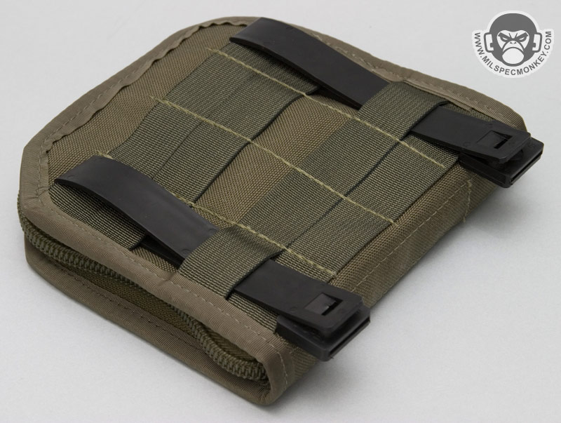 The Packrat makes for a nice take on an admin pouch sized multipurpose pouch. Elastic on the inner front is good for pens and tools, while the back inner elastic is setup more for small notebooks. In the back is a sleeve pocket for extra documents or thin division. Personally I'd like to see another elastic strip on the inner back for more holding options. Since this pouch opens up clamshell style, it makes the pouch much more versatile than most admin pouches out there. Although PALS webbing on the front is good for quick places to put things, I'd drop the top strip and add loop velcro.